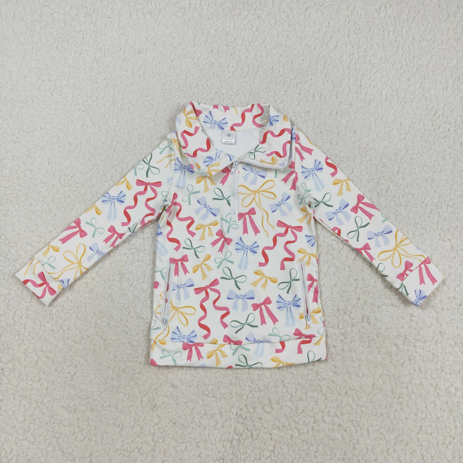 RTS NO MOQ(In Stock) GT1065 Beige long-sleeved yoga top with a colorful bow pattern