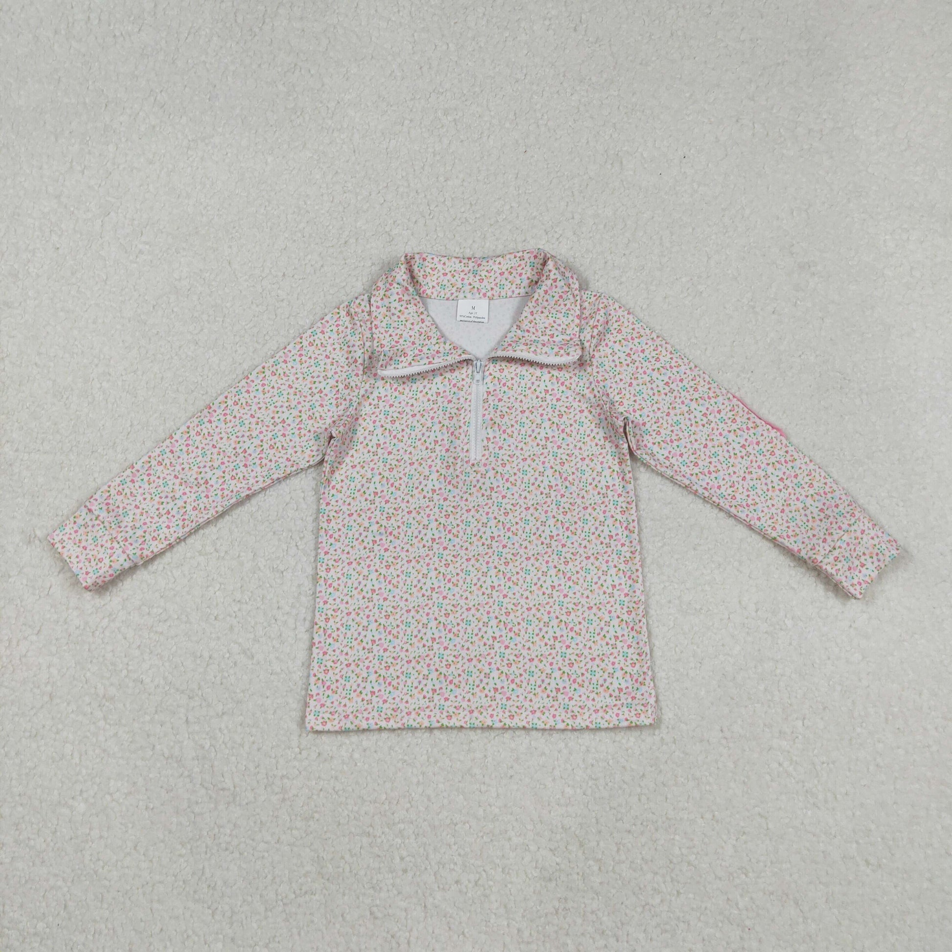 RTS NO MOQ(In Stock) GT1145 Floral Print Zippered Long-Sleeved Top