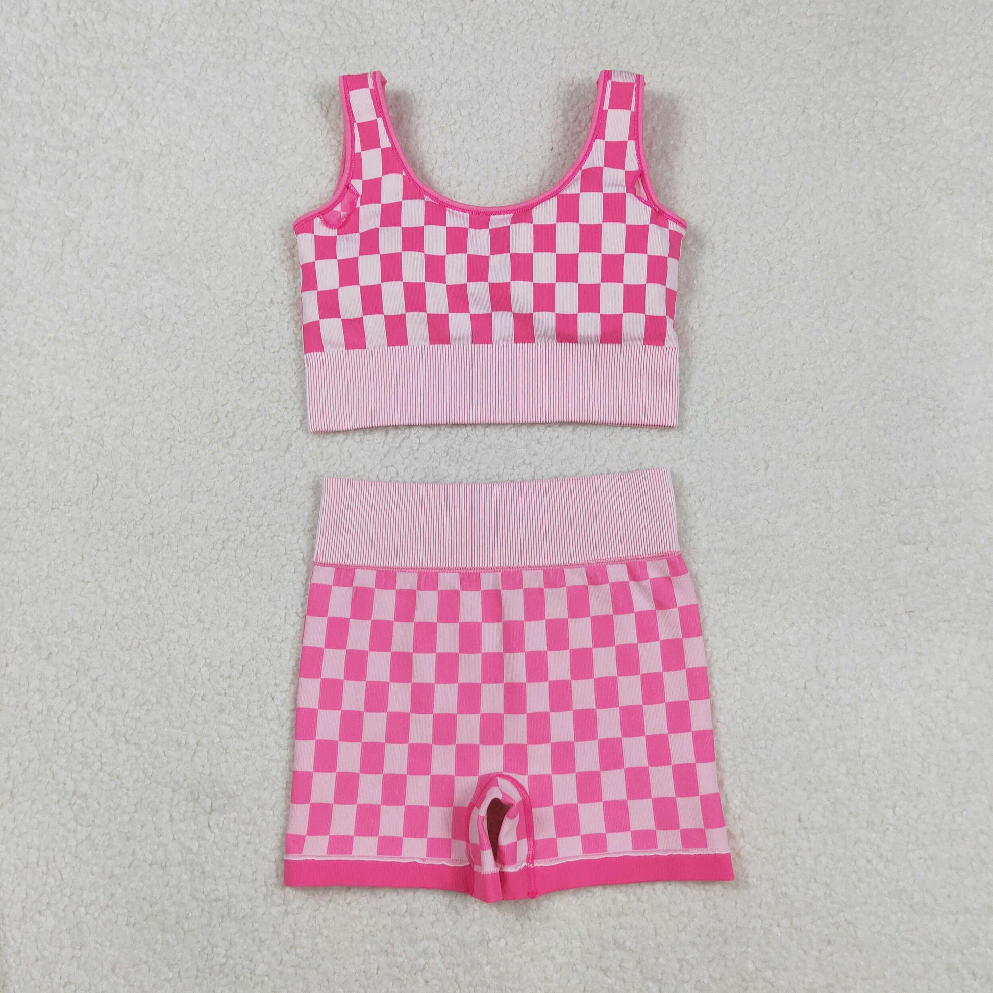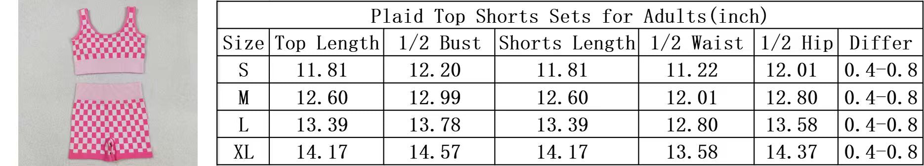 RTS NO MOQ(In Stock) GT1190+SS0645 Adult Women's Pink and White Checkered Tank Top Shorts set