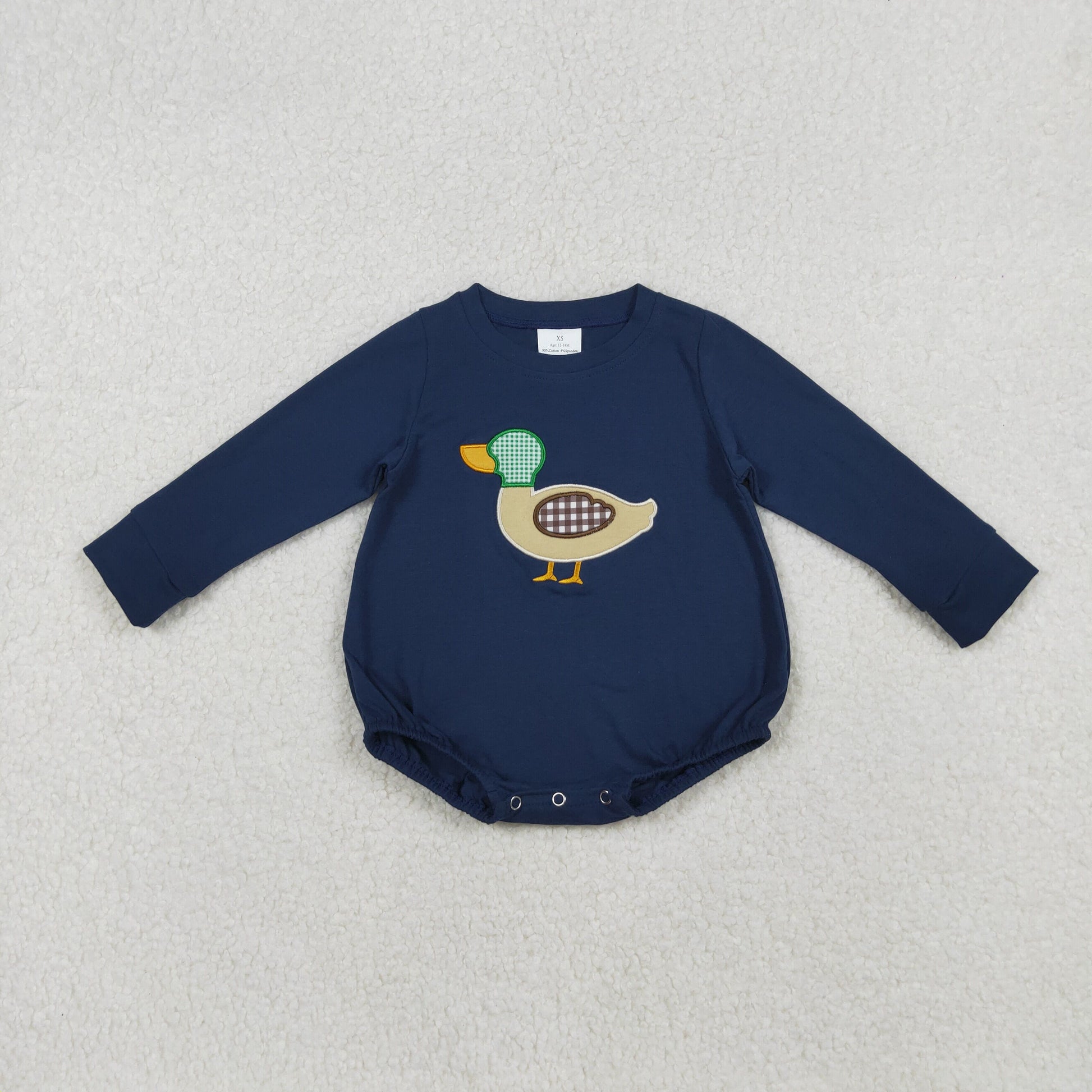 RTS NO MOQ(In Stock) LR2436 Navy blue long-sleeved bodysuit with embroidered duck