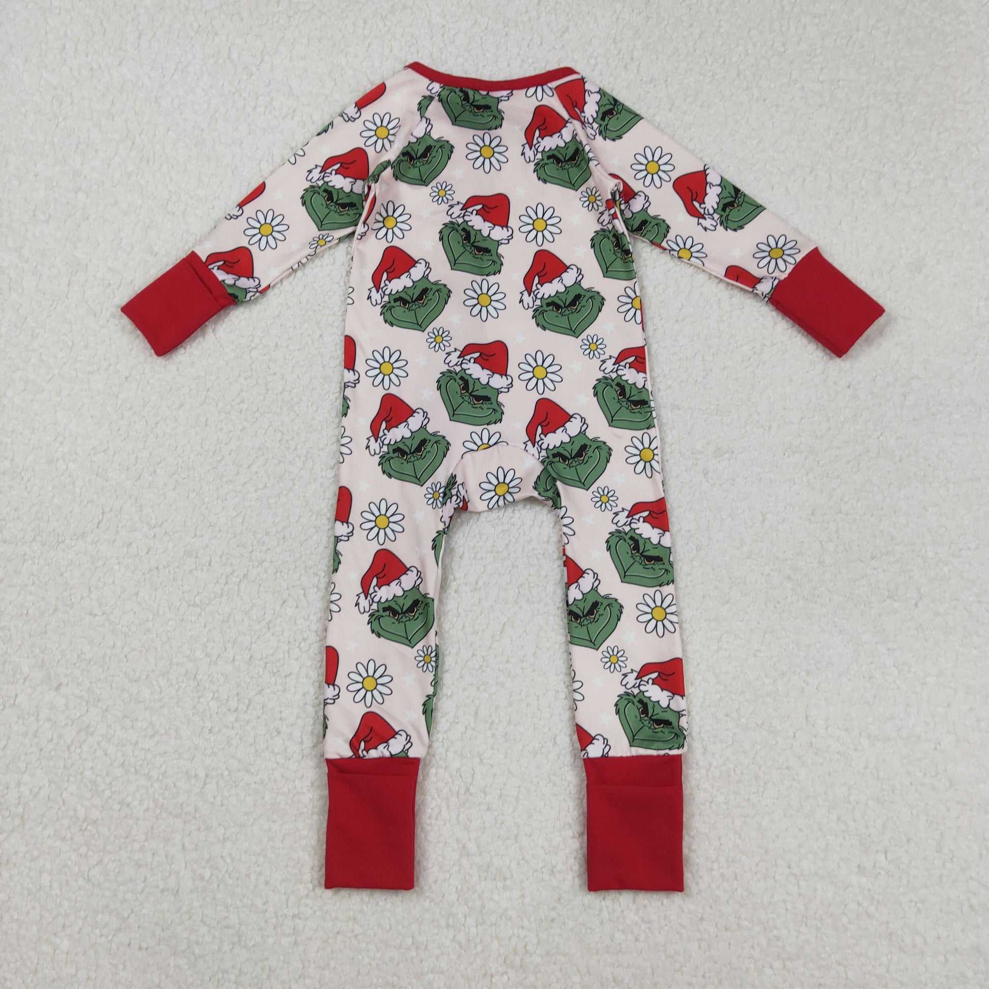 RTS NO MOQ(In Stock) LR2489 Christmas cartoon floral red lace pink zippered long-sleeved bodysuit