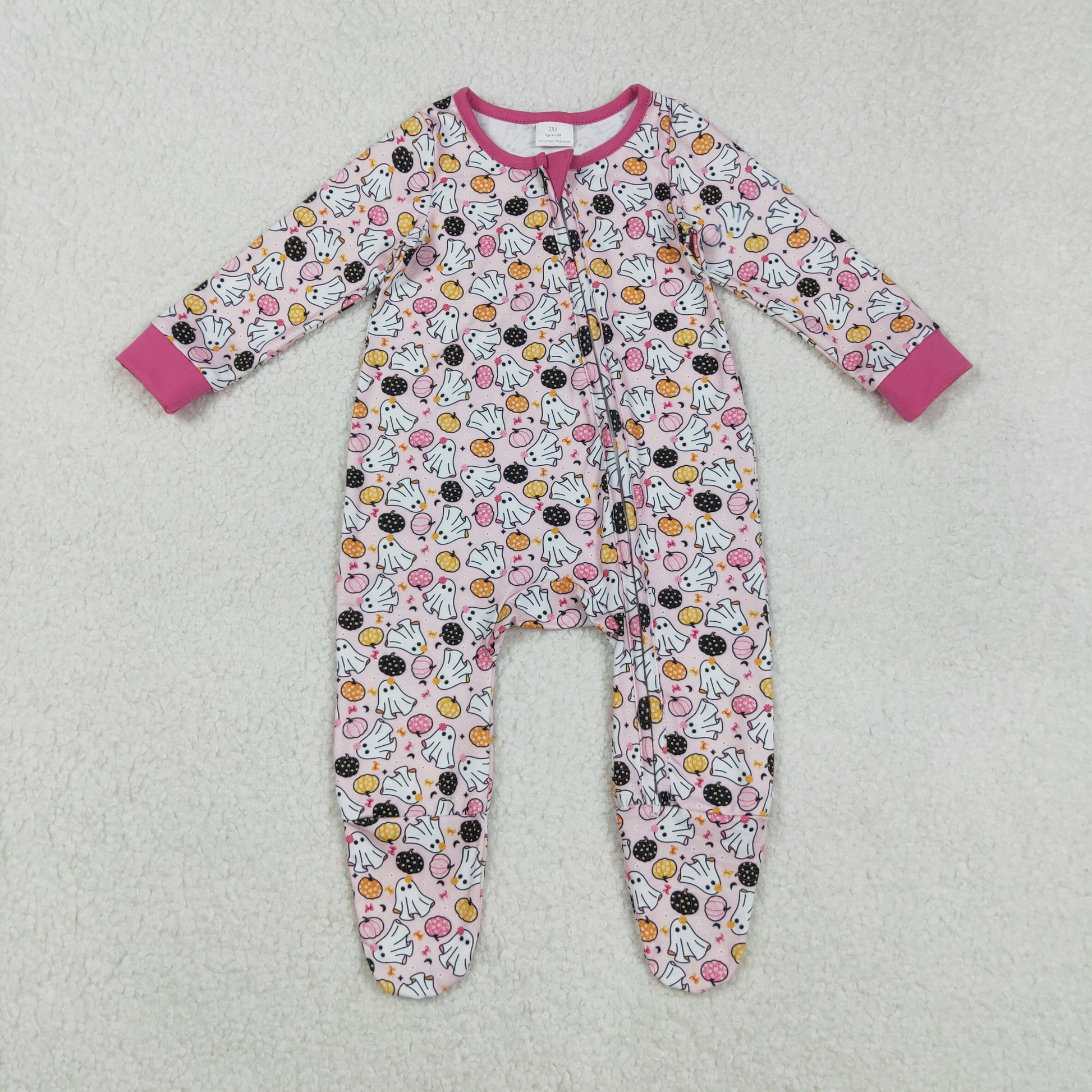 RTS NO MOQ(In Stock) LR2506 Ghostly pumpkin pink long-sleeved zippered bodysuit