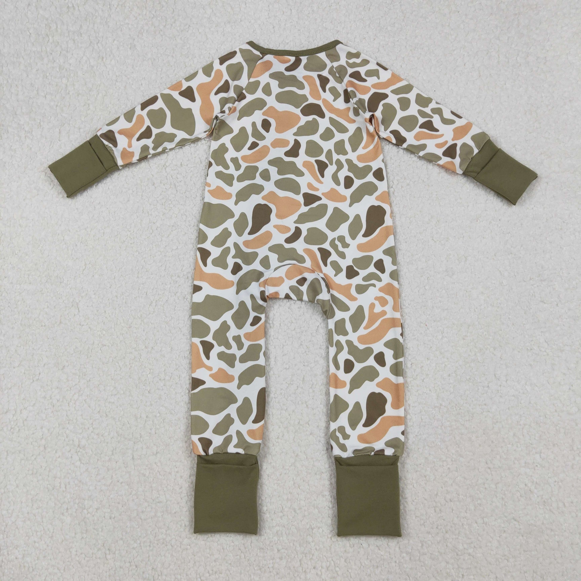 RTS NO MOQ(In Stock) LR2578 Lime and Green Camouflage Long-Sleeved Bodysuit with White Zipper