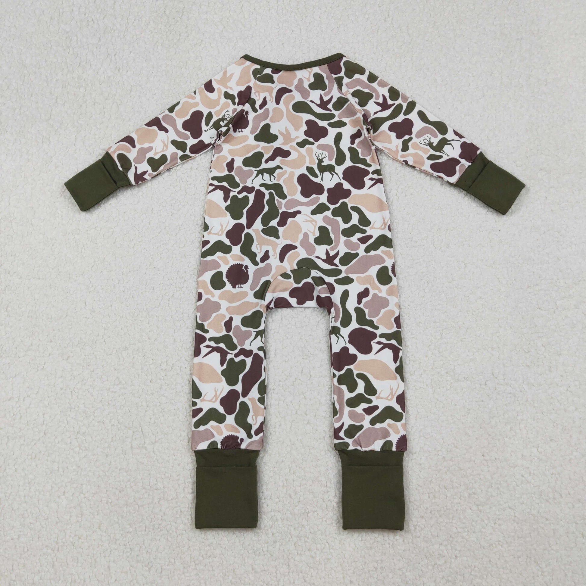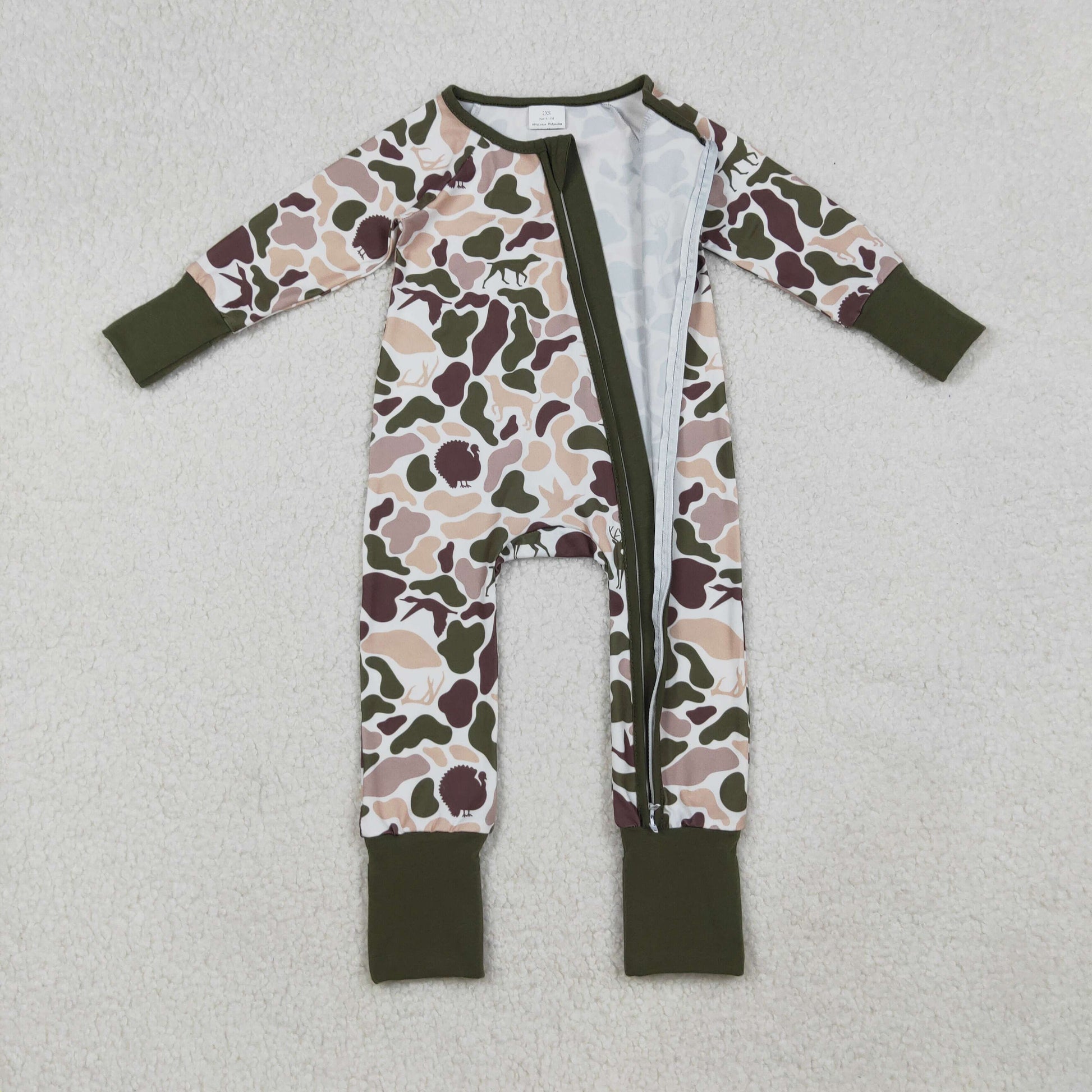 RTS NO MOQ(In Stock) LR2590 Duck and puppy camouflage zippered long-sleeved bodysuit