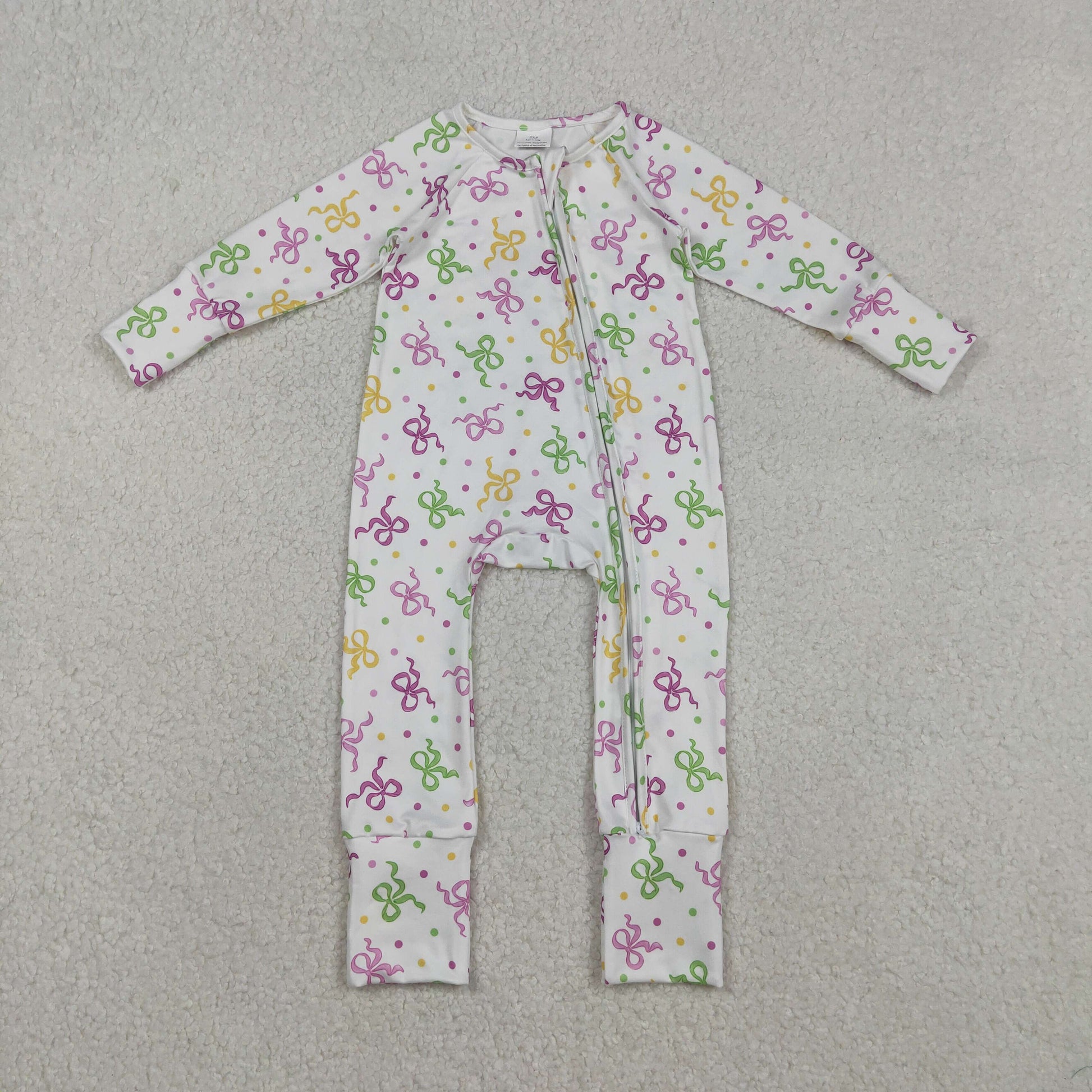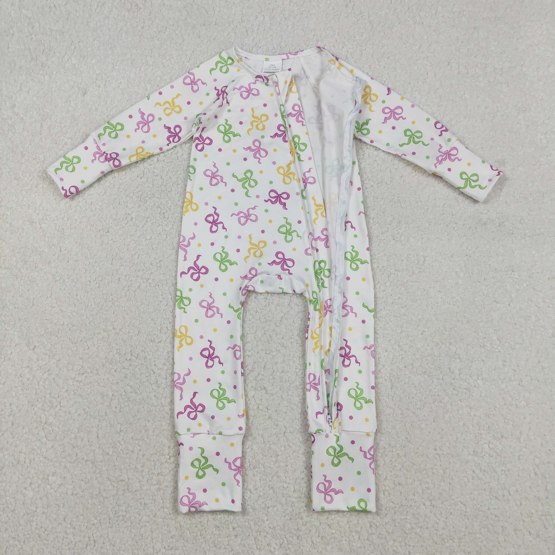 RTS NO MOQ(In Stock ) Carnival Bow Pattern Polka Dot White Lace Zipper Long-Sleeve Jumpsuit