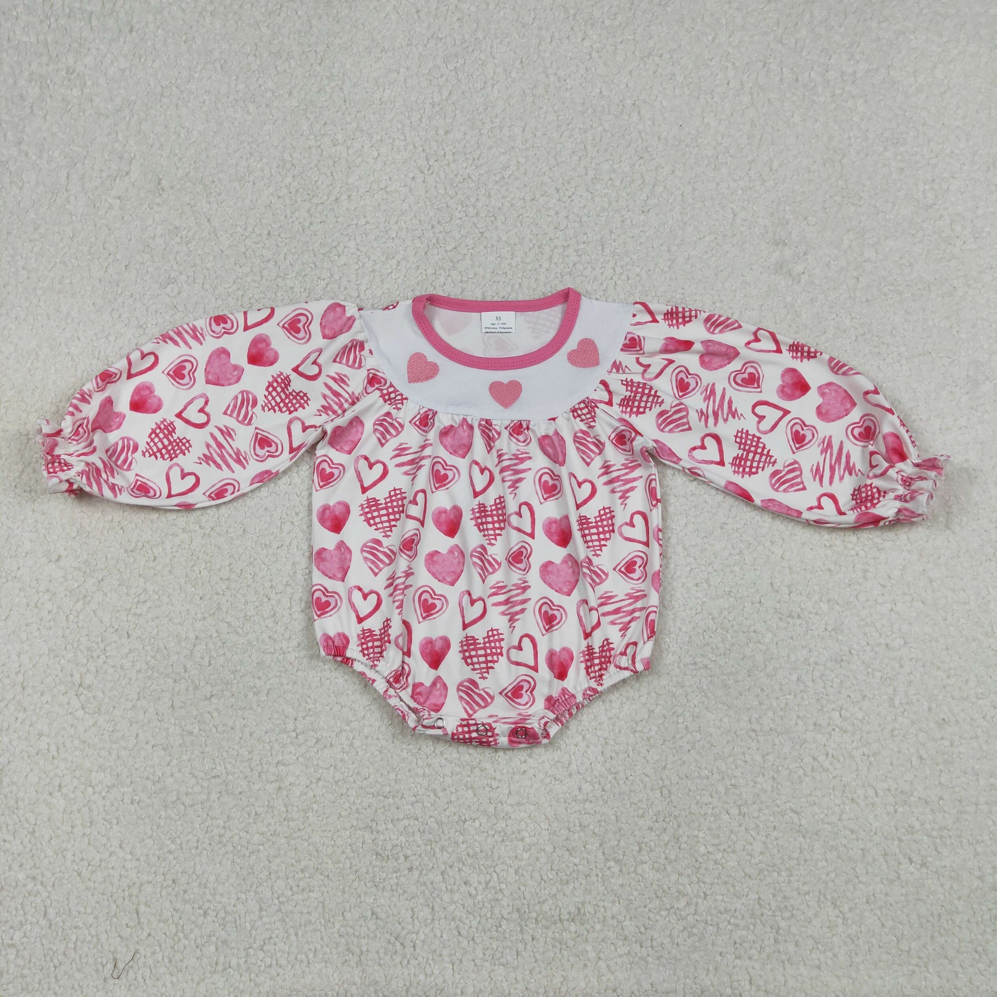 RTS NO MOQ(In Stock) Embroidered Valentine's Day Pink Heart White Long-Sleeve Jumpsuit