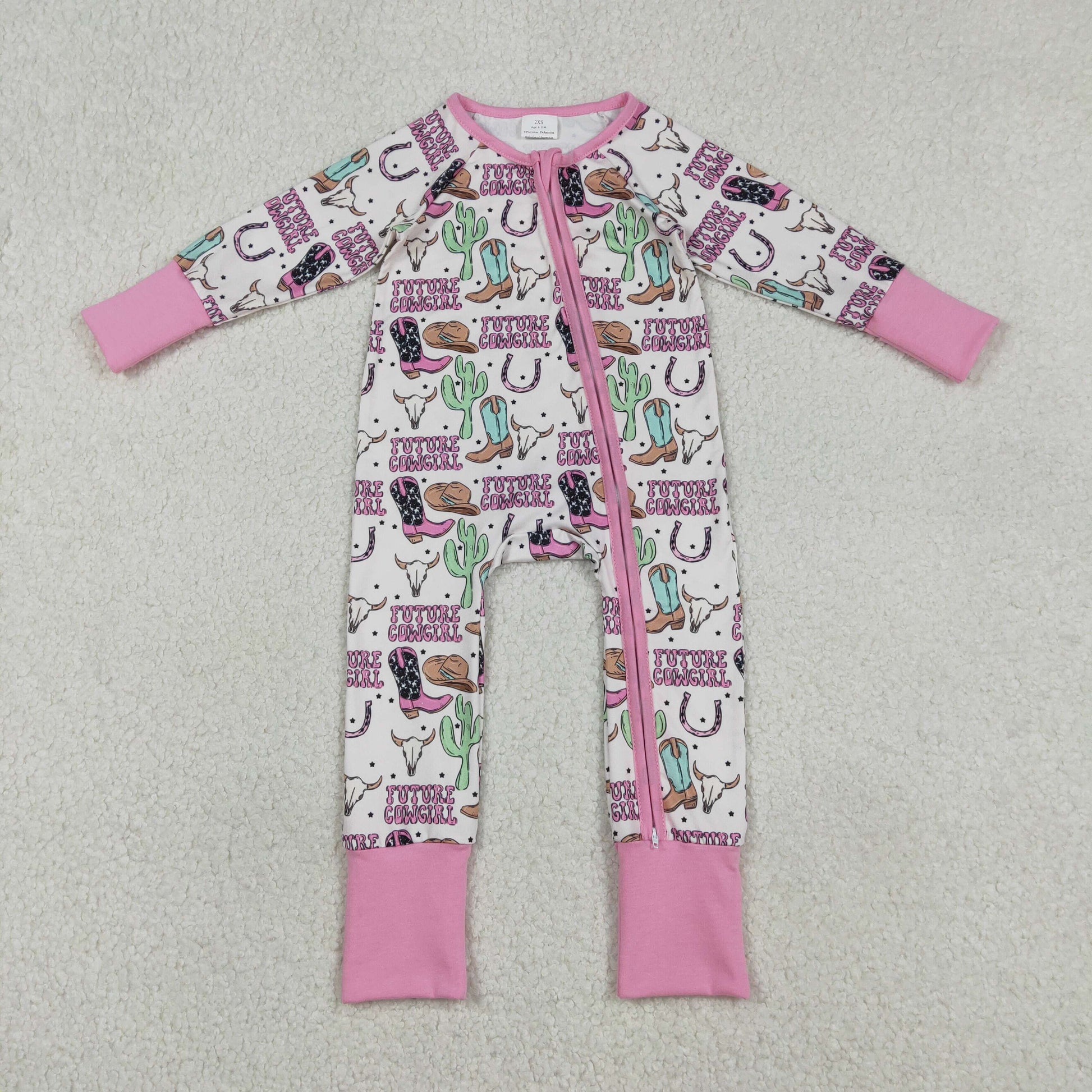 RTS NO MOQ(In Stock ) Future Cowgirl Alpine Cow Head Cactus Boots Beige Zipper Long-Sleeve Jumpsuit