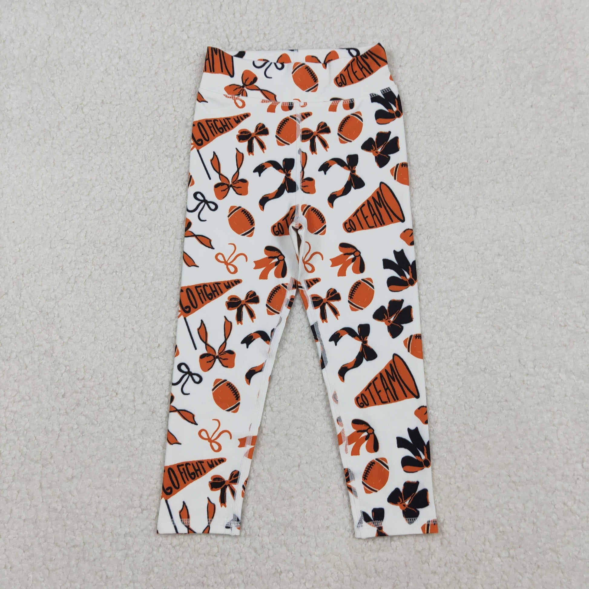 RTS NO MOQ(In Stock) P0847 Football Orange Flared Bow Pattern Yoga Pants
