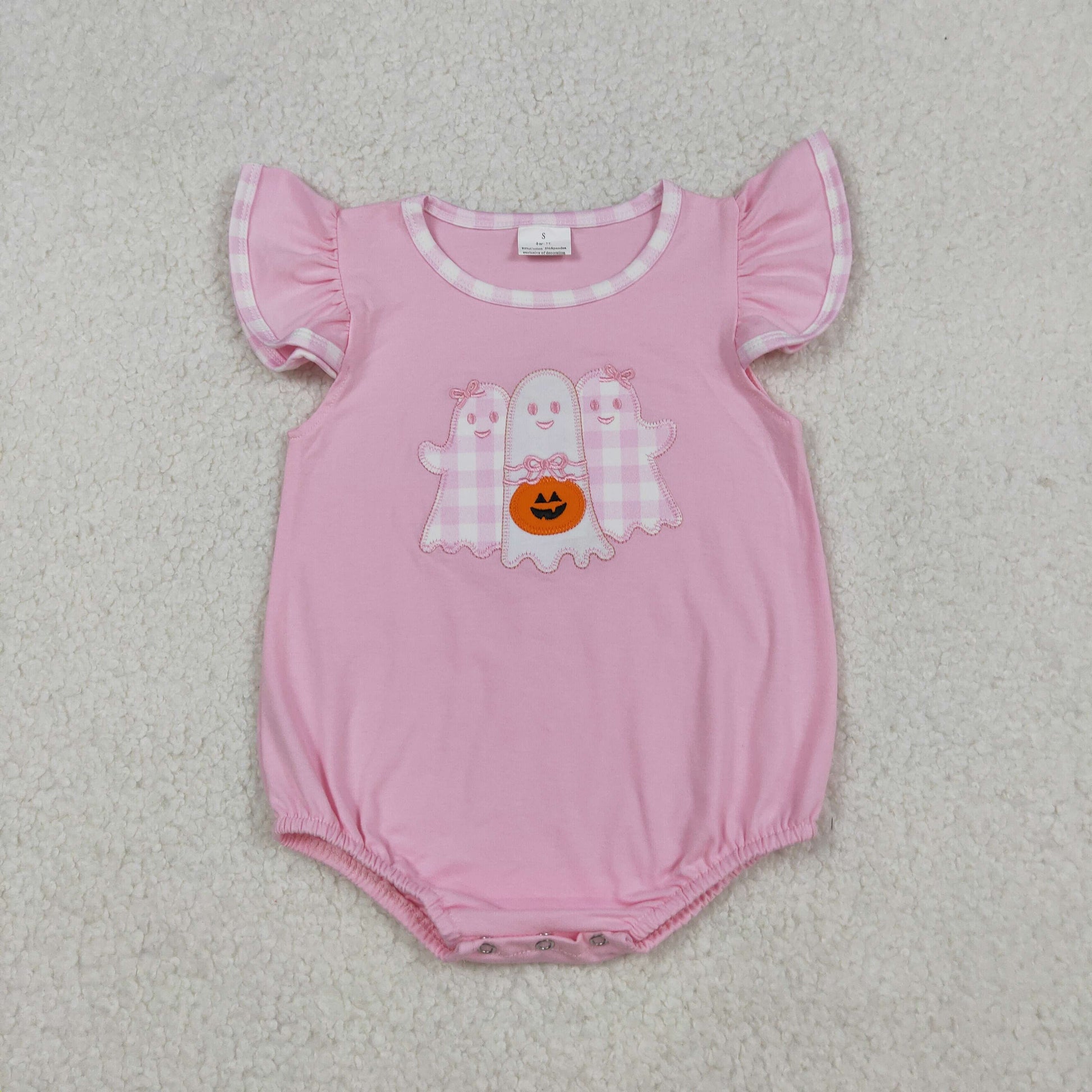 RTS NO MOQ(In Stock) SR3196 Embroidered Halloween ghost lantern pink vest bodysuit