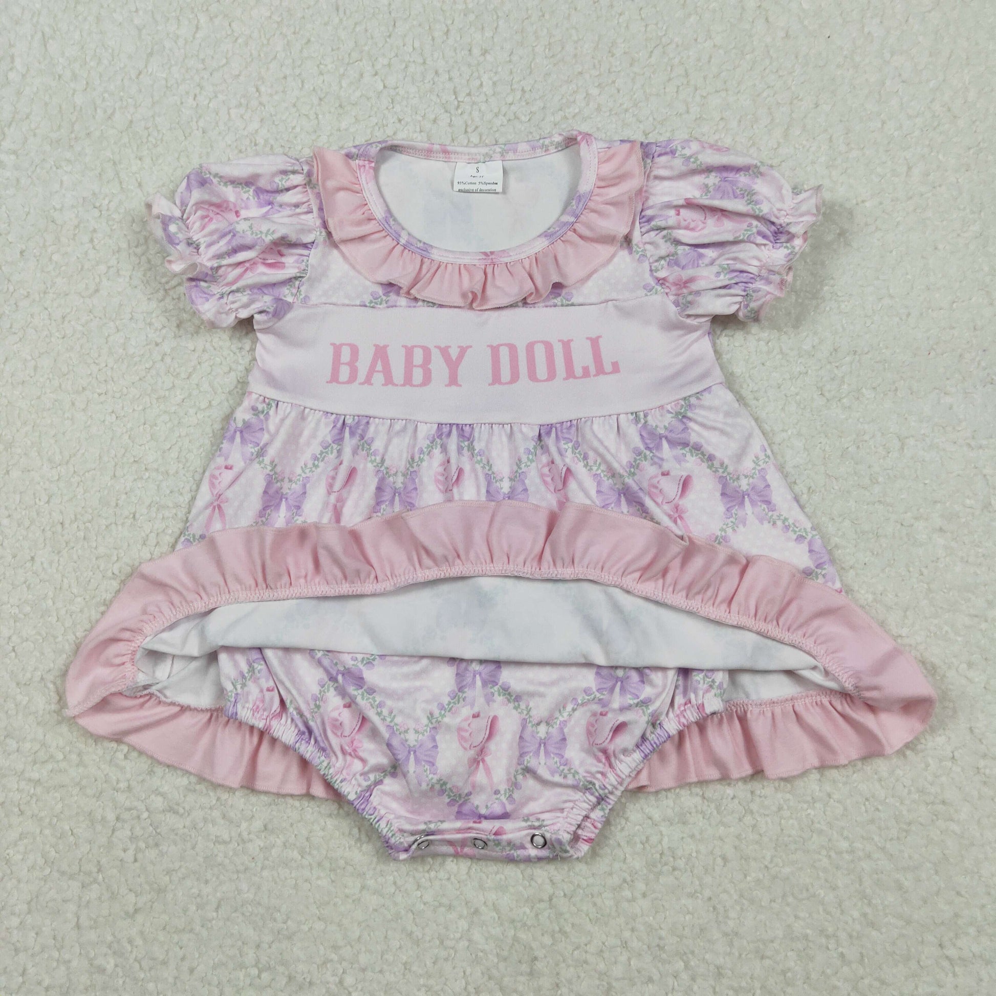 RTS NO MOQ(In Stock) SR3291 Baby Doll Floral Bow Pattern Plaid Short-Sleeve Onesie