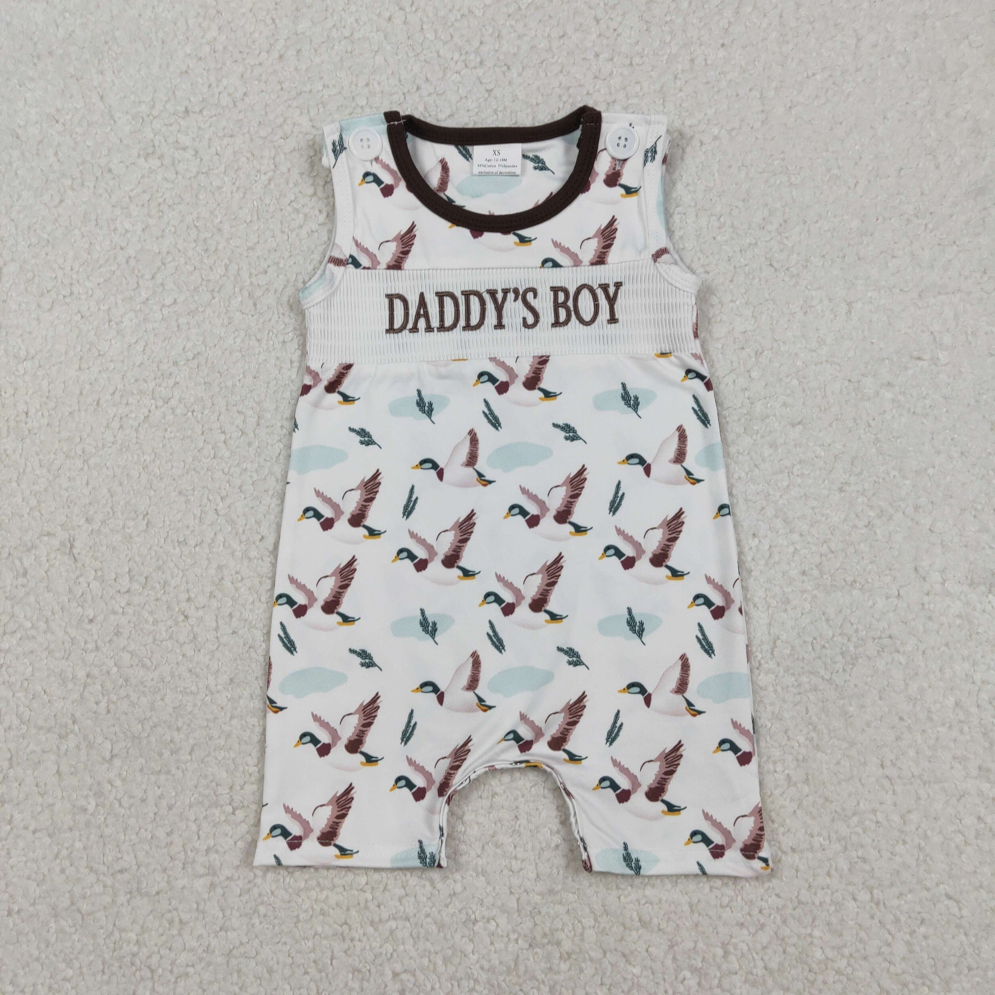 RTS NO MOQ(In Stock) Embroidered Daddy's Boy Duck Sleeveless Jumpsuit