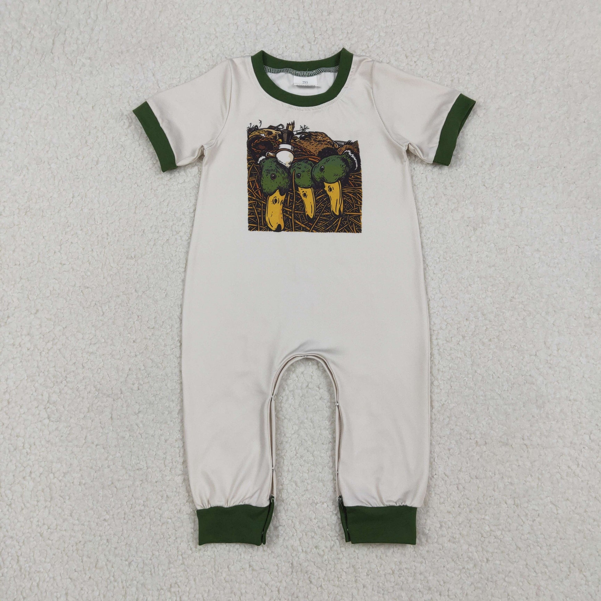 RTS NO MOQ(In Stock) Light-colored short-sleeved jumpsuit with duck hunting design