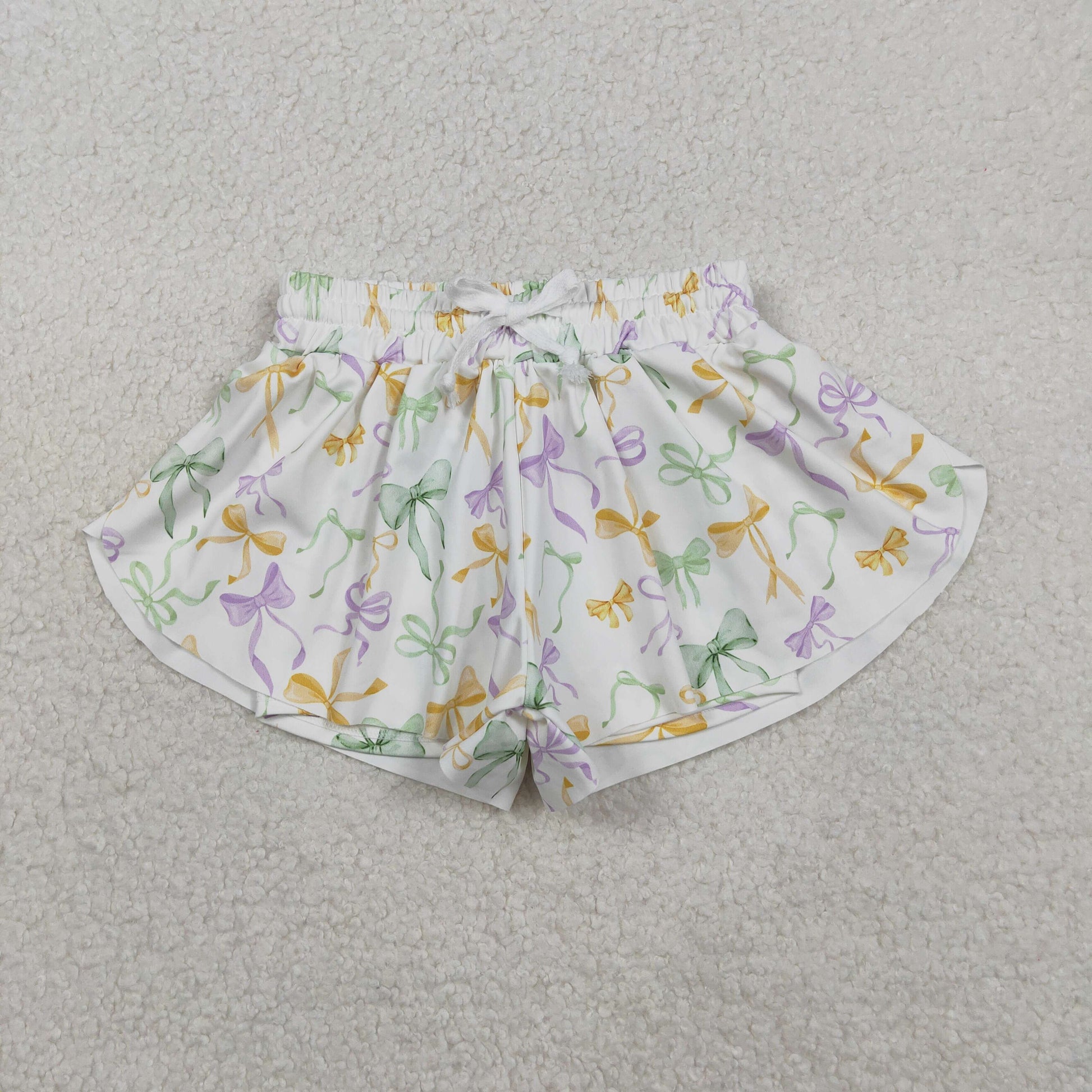 RTS NO MOQ(In Stock) SS0682 Carnival Bow Pattern White Yoga Shorts