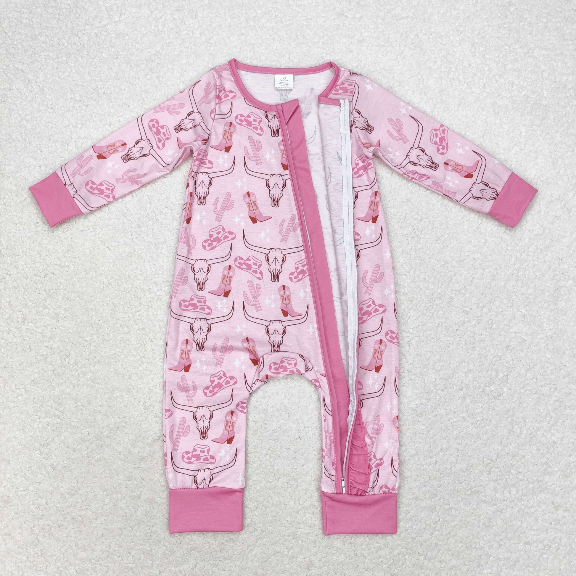 bamboo rts no moq LR0689 Modal alpine cowboy hat boots pink lace zipper long sleeve jumpsuit