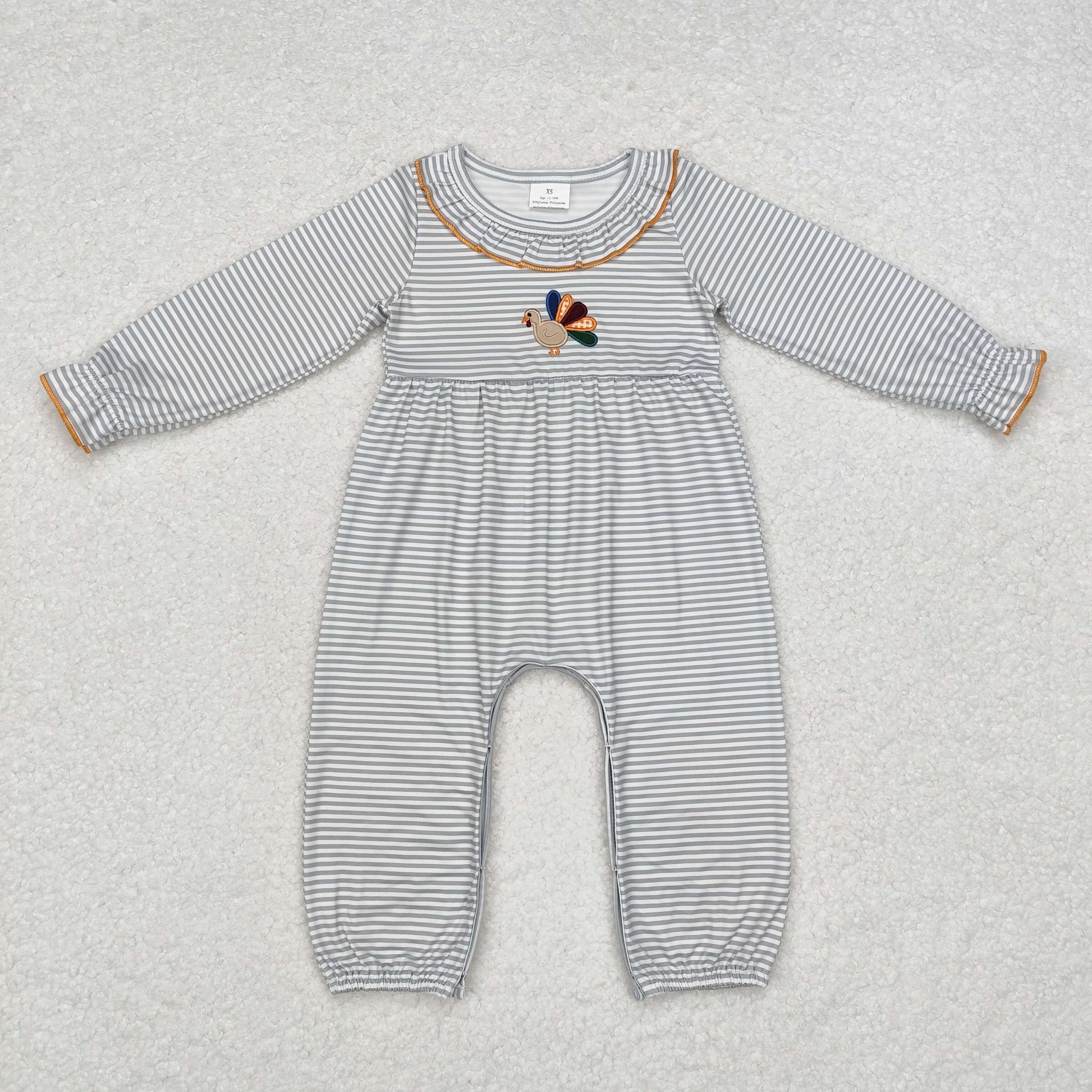rts no moq LR1542 Embroidered turkey stripe lace long-sleeved jumpsuit