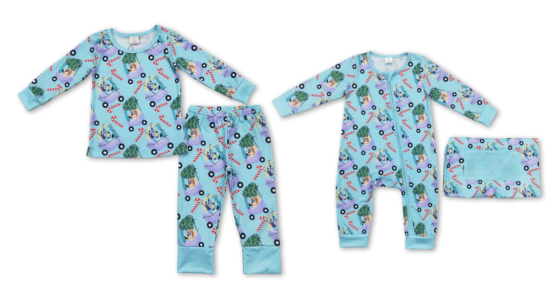 RTS NO MOQ print BLP0694 bluey Modal Christmas tree cart cane blue long bamboo fabric