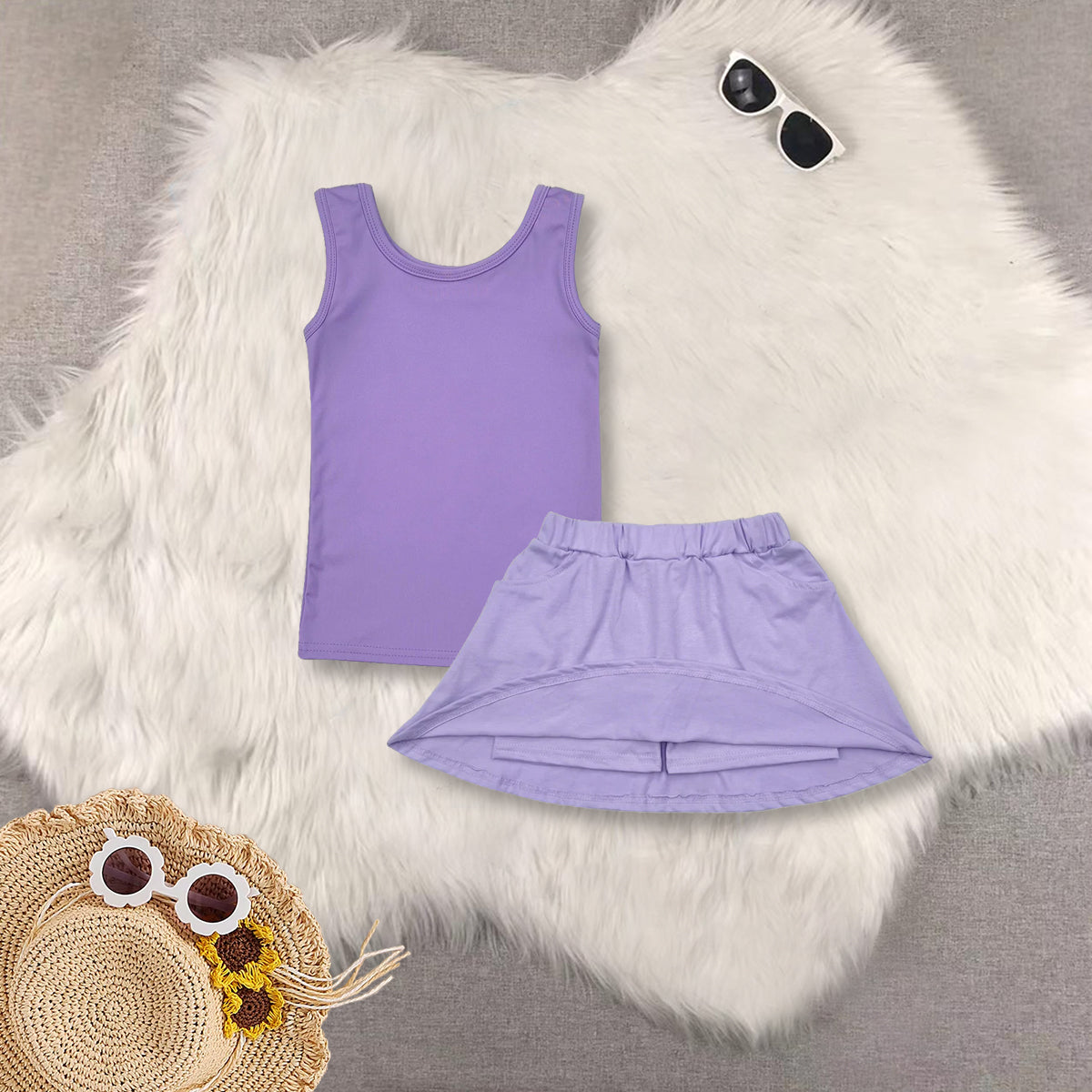 RTS NO MOQ purple yoga short-sleeved top pants skirt sets