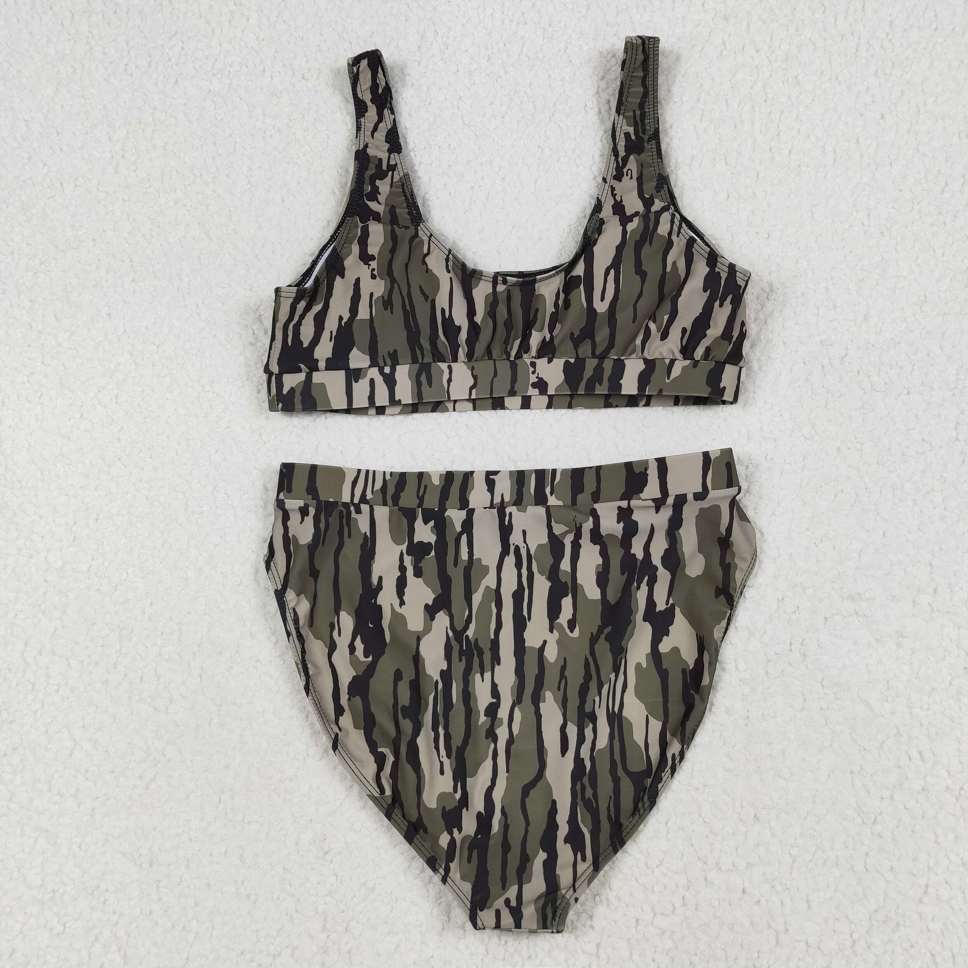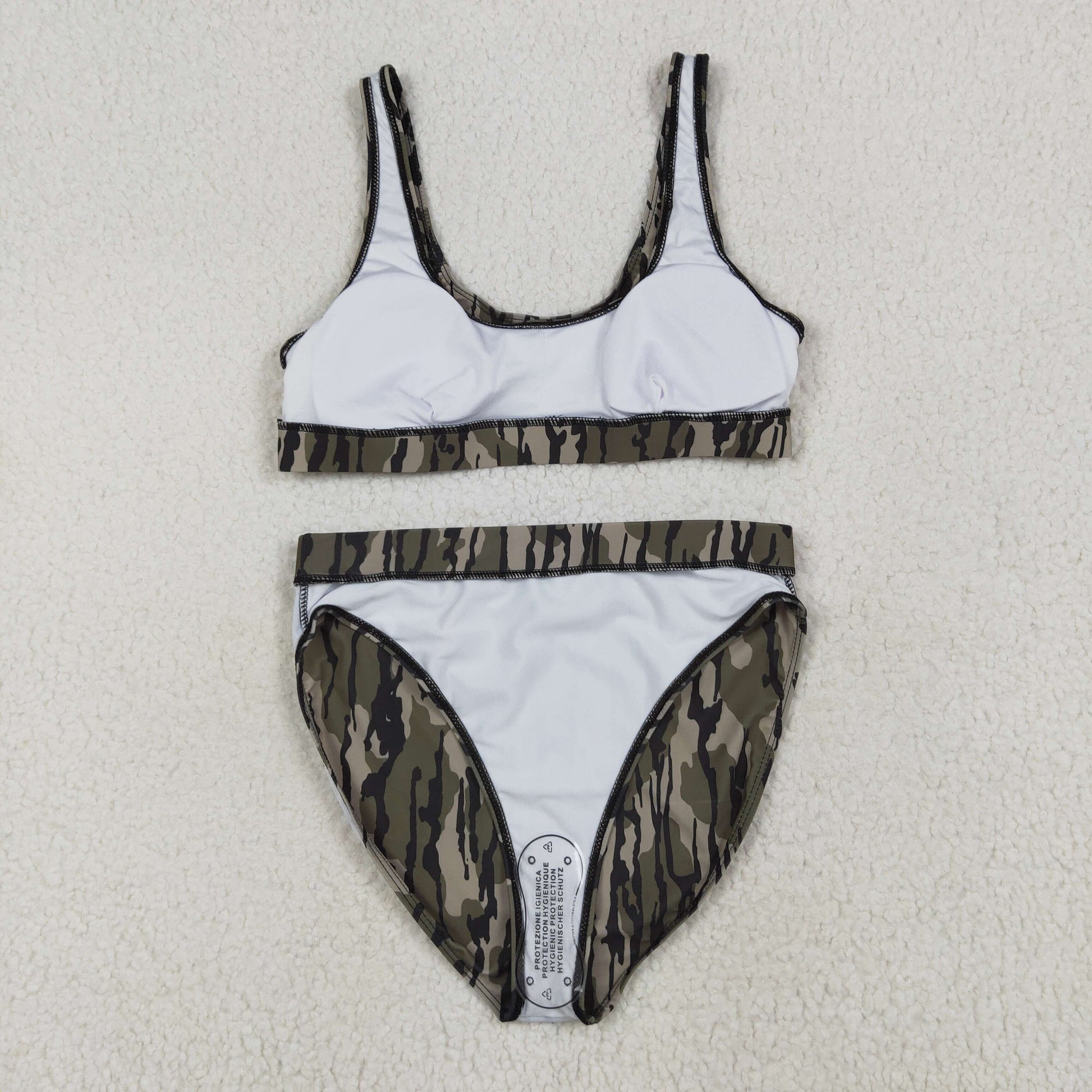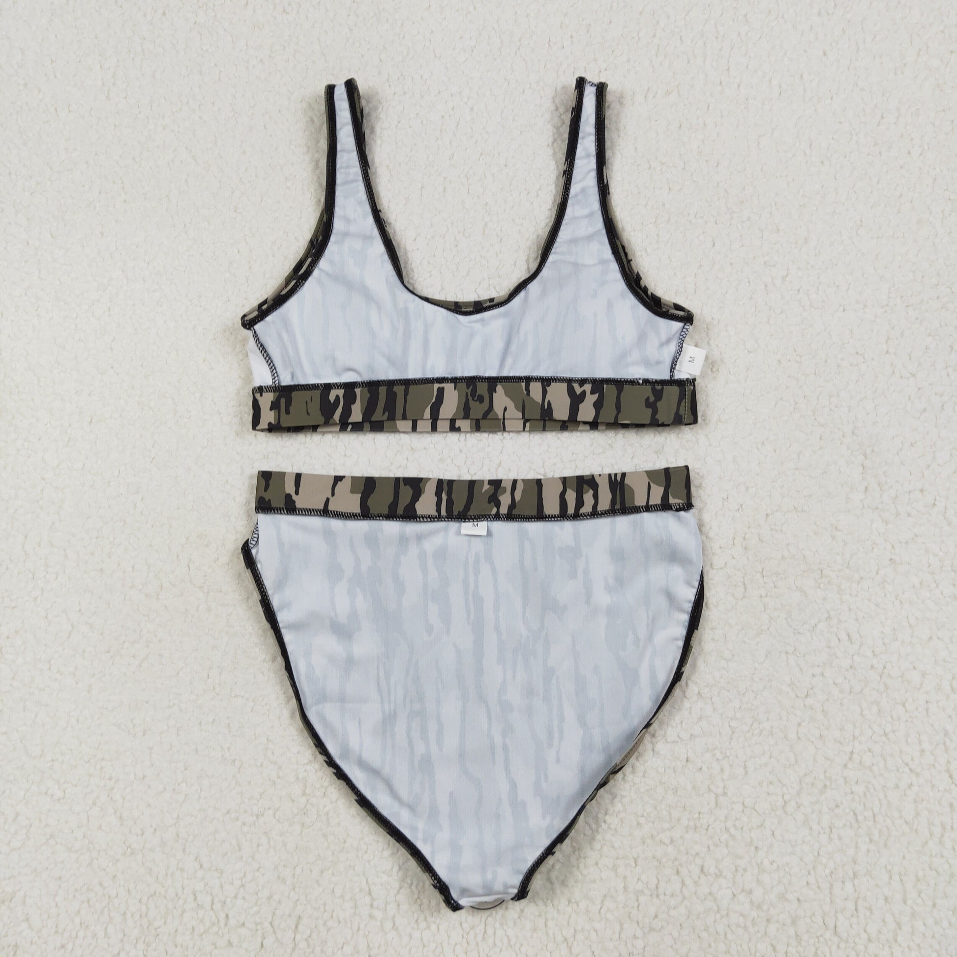 RTS NO MOQ(In Stock) S0563+S0564 Adult female military green camouflage swimsuit vest briefs sets
