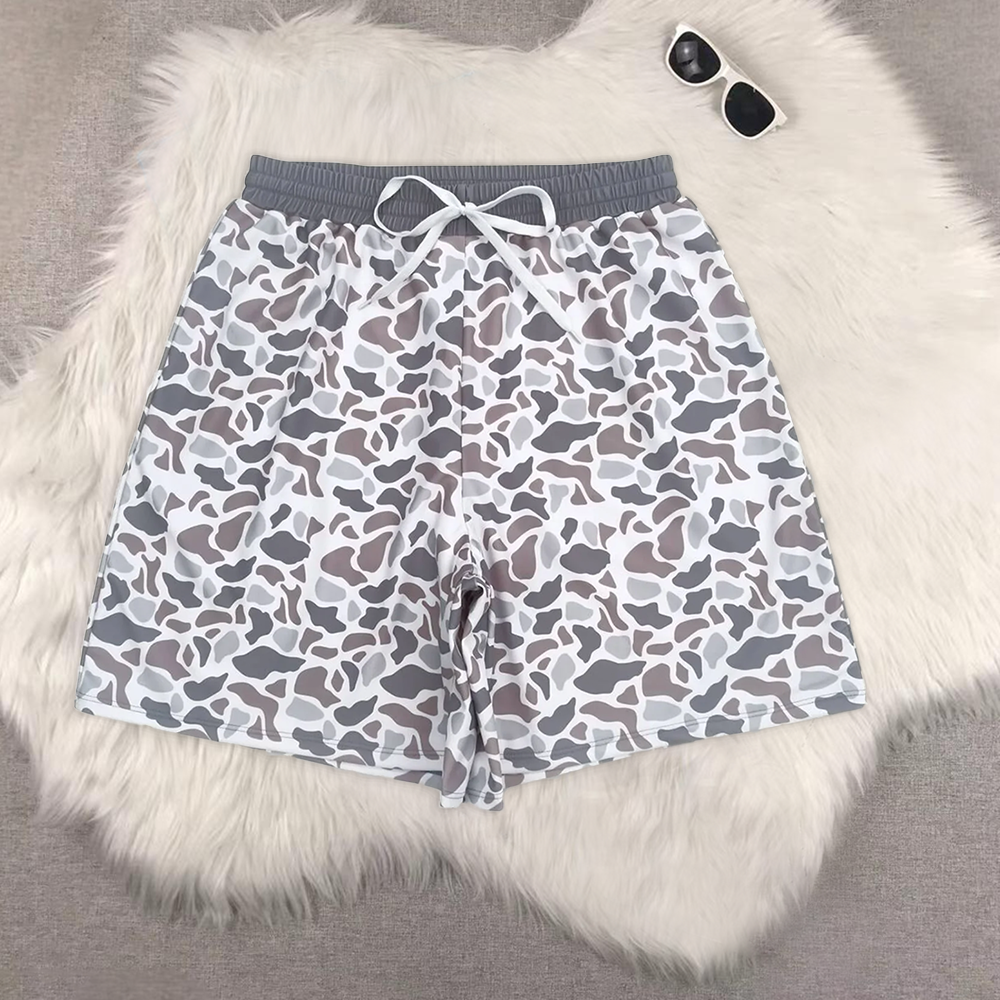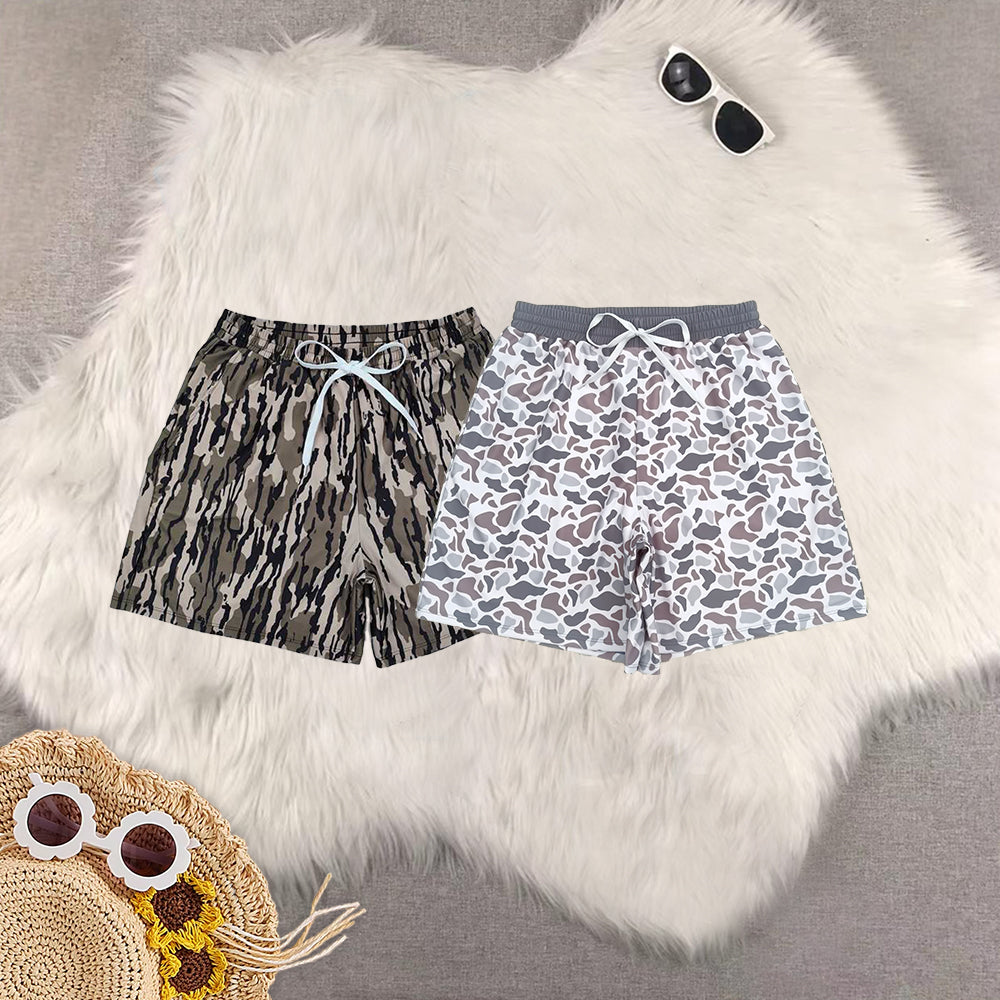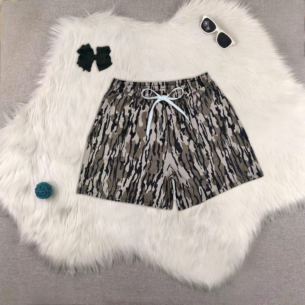 RTS NO MOQ Sibling Adult male brown and green camouflage swim trunks