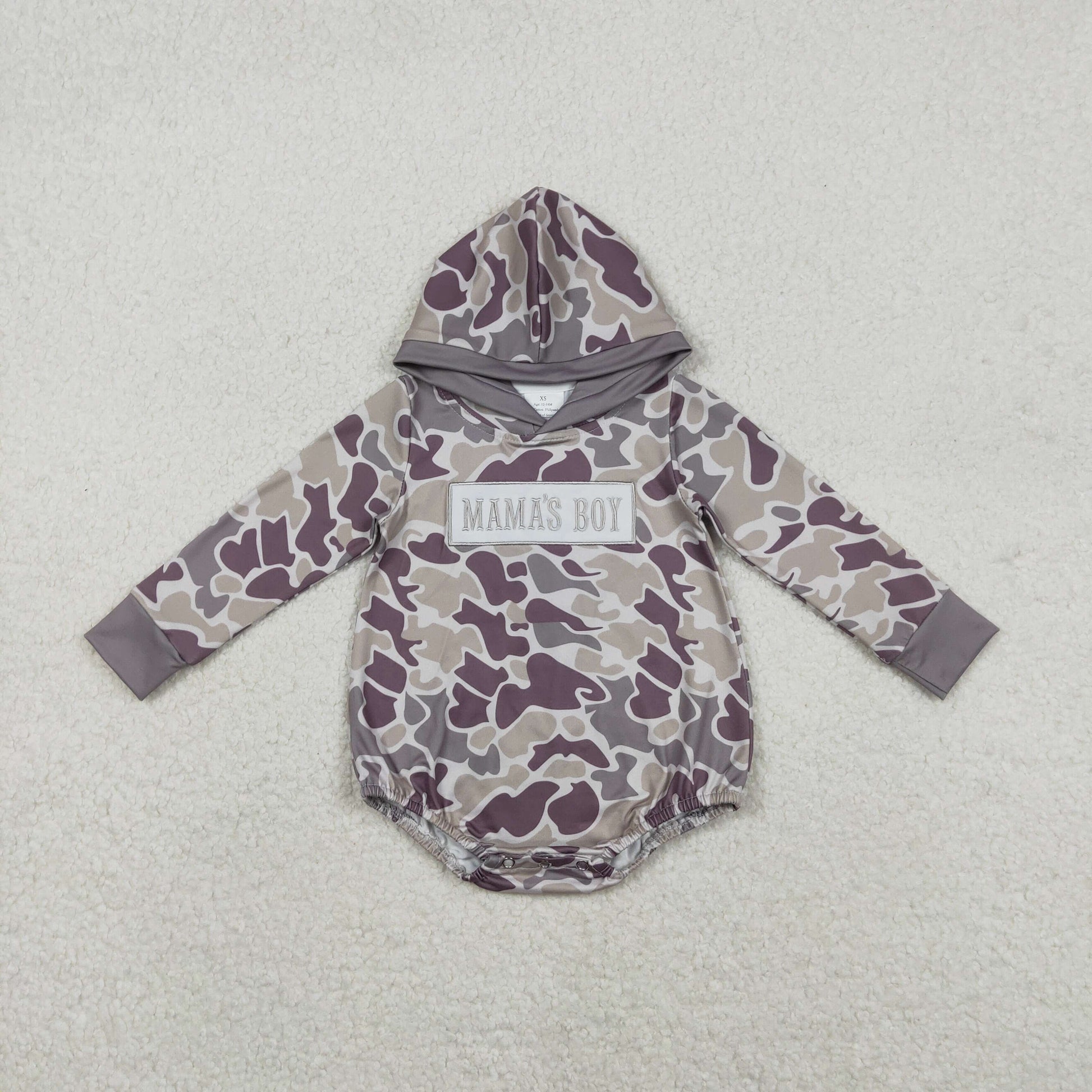 RTS NO MOQ Sibling baby boy clothes Embroidered Mama's Boy Brown-Green Camouflage Hooded Long-Sleeve Jumpsuits