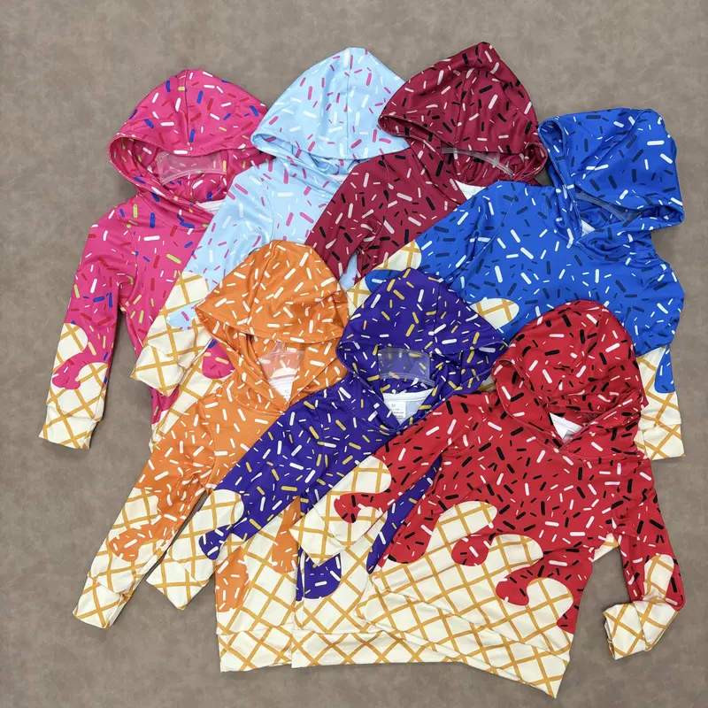 RTS NO MOQ Sibling baby boy clothes Waffle ice cream purple hooded long sleeve tops