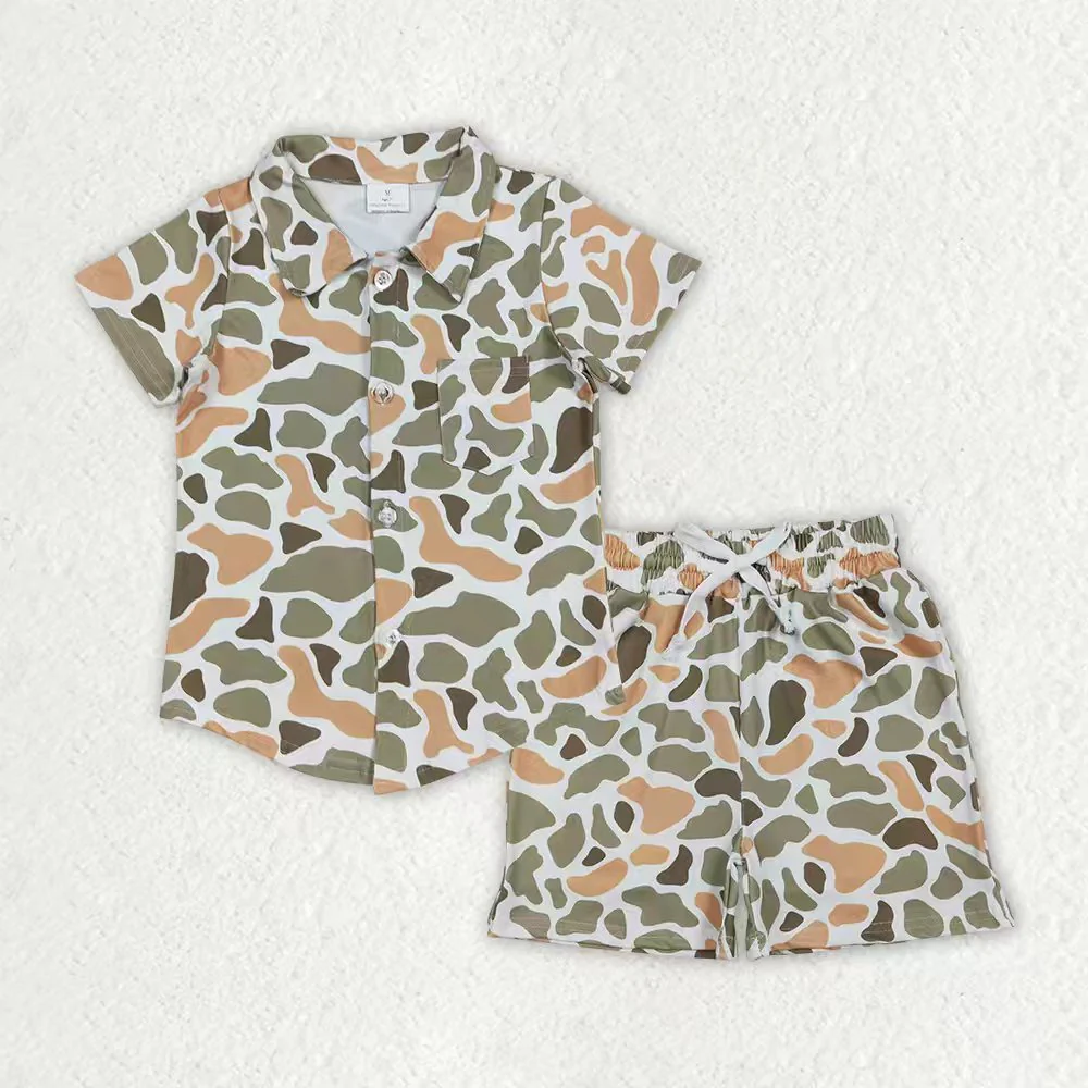RTS NO MOQ Sibling baby boys clothes camouflage button short-sleeved shorts sets
