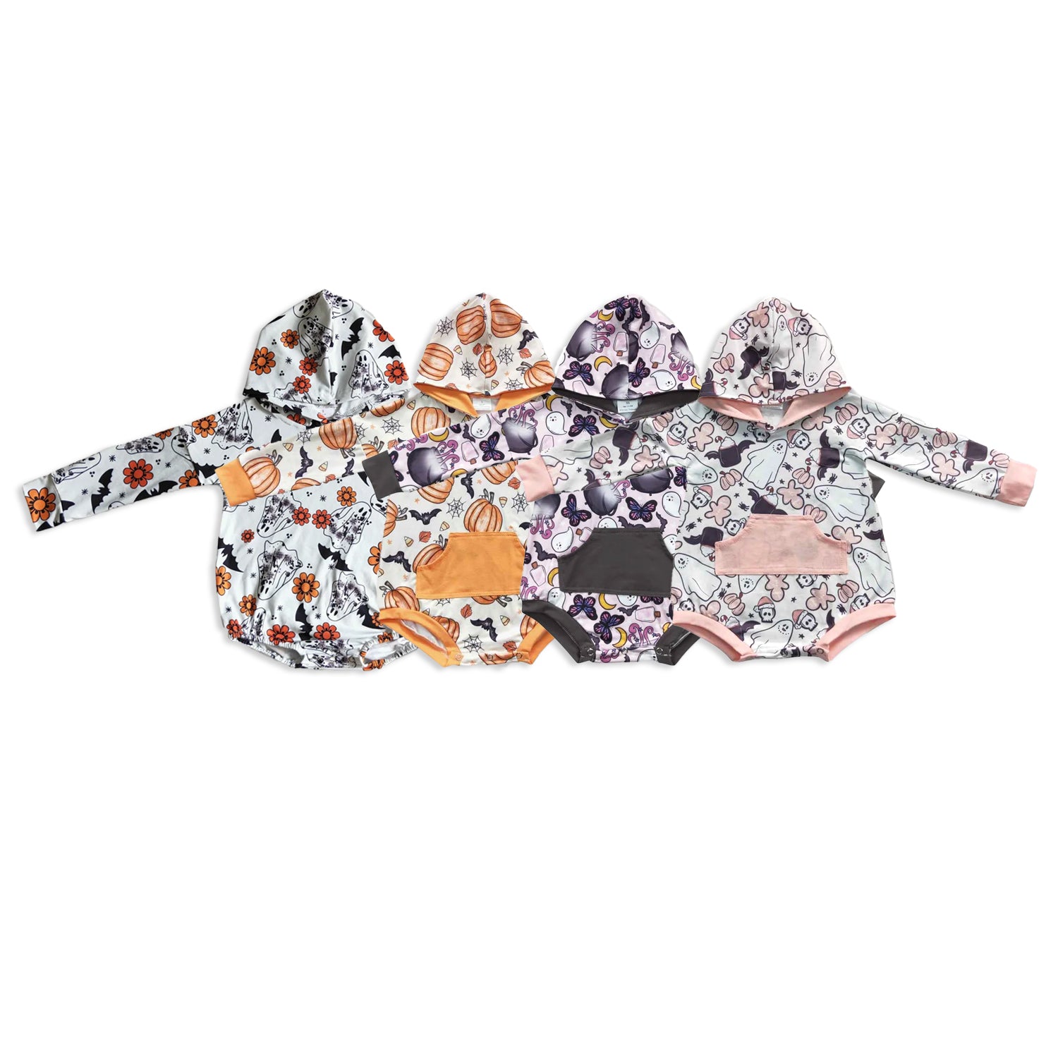 RTS NO MOQ Sibling Baby girl boy clothes halloween hooded long Sleeve Romper Mixed Sizes