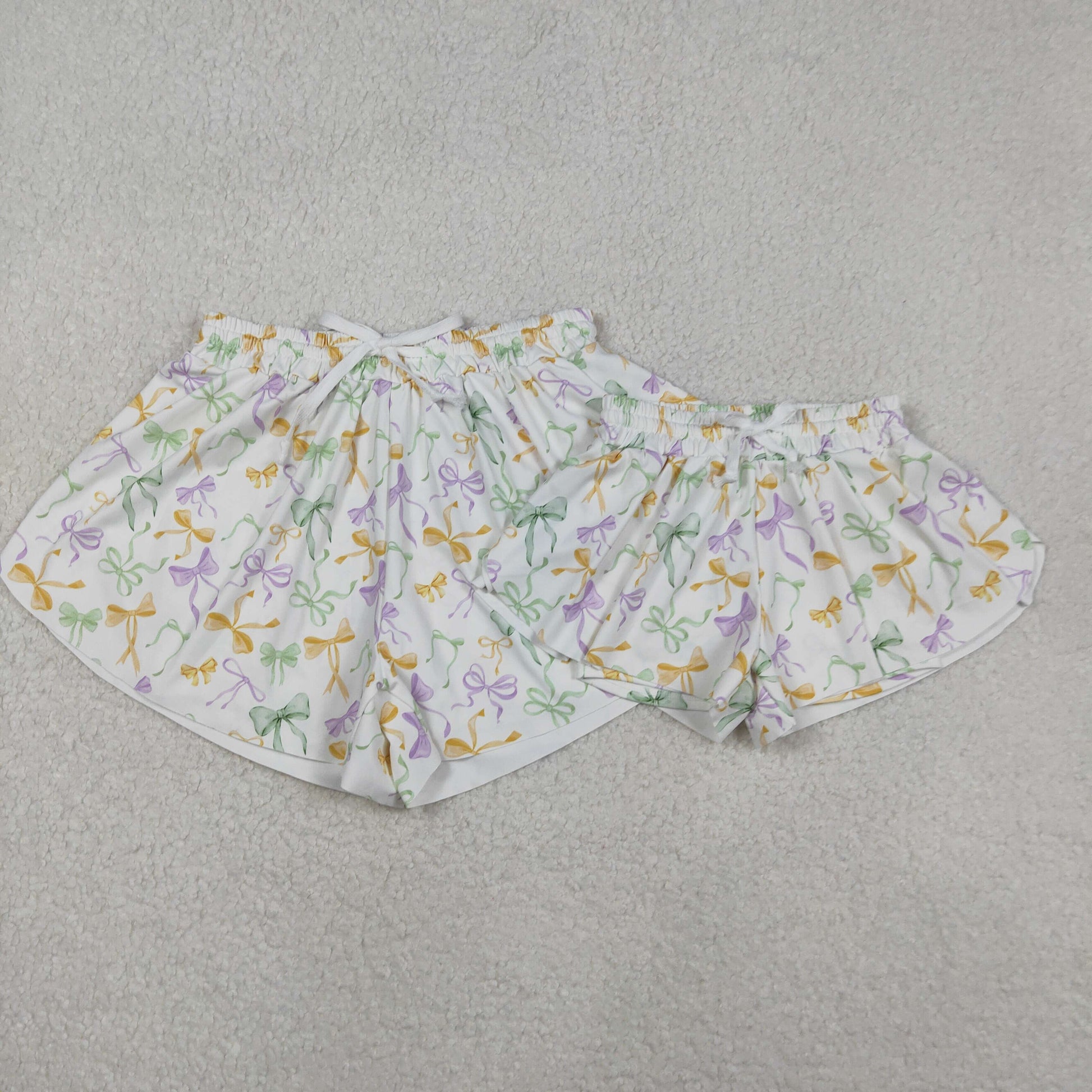 RTS NO MOQ Sibling baby girl clothes and Adult clothes mardi gras yoga bow kids shorts and adult shorts