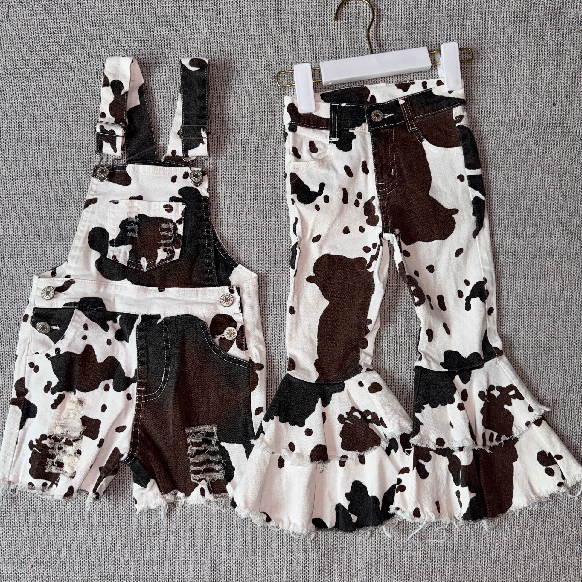 RTS NO MOQ Sibling baby girl clothes cow print camouflage denim overbell