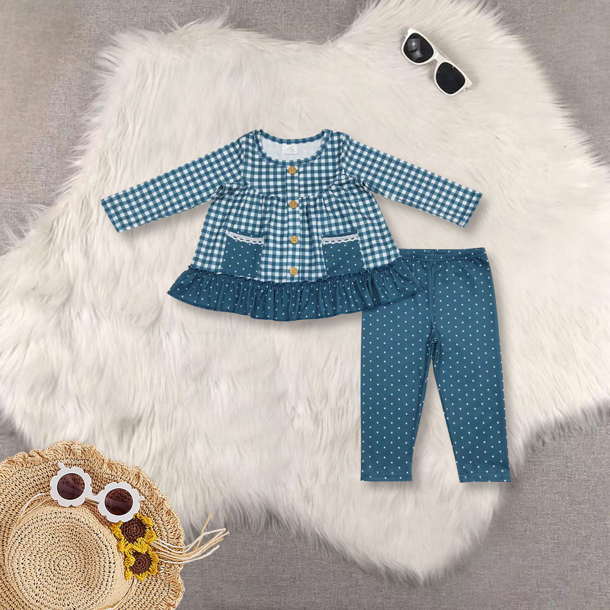 RTS NO MOQ Sibling baby girl clothes long-sleeved pink and white striped trouser suit with flower pockets