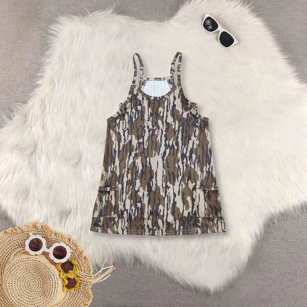 RTS NO MOQ Sibling baby girl clothes camouflage suspender yoga dresses 2