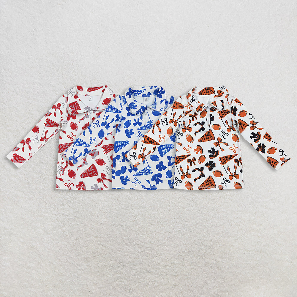 RTS NO MOQ Sibling baby girl clothes team cheer bow long sleeve tops