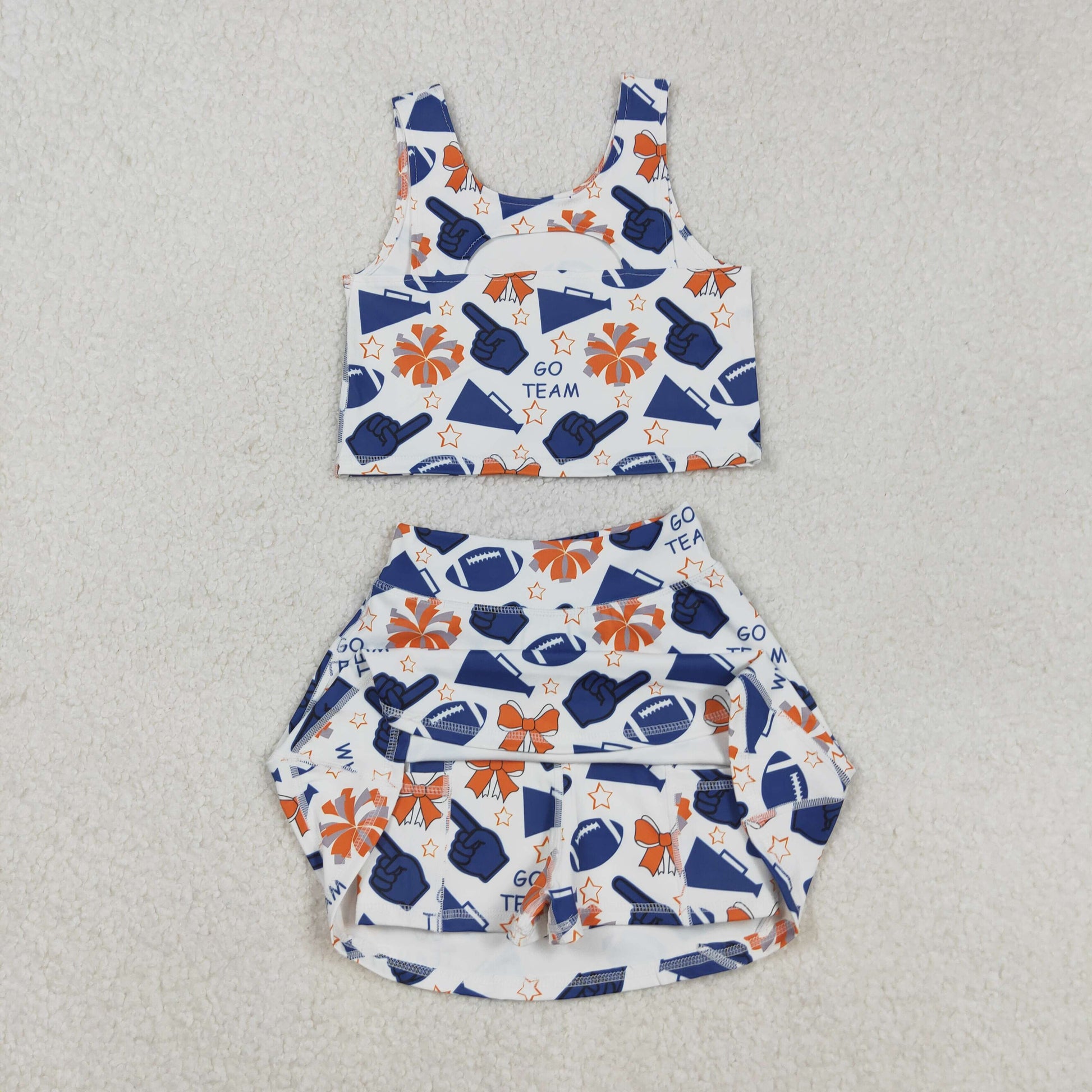 RTS NO MOQ Sibling baby girl clothes team cheer skirt yoga sets and shorts sets
