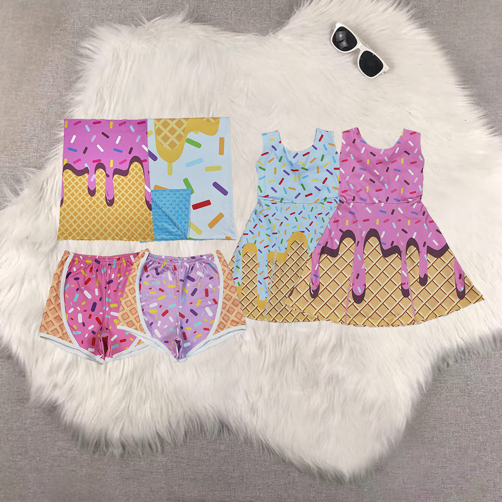 RTS NO MOQ Sibling baby girl clothes yoga team sleeveless dress and blanket and shorts