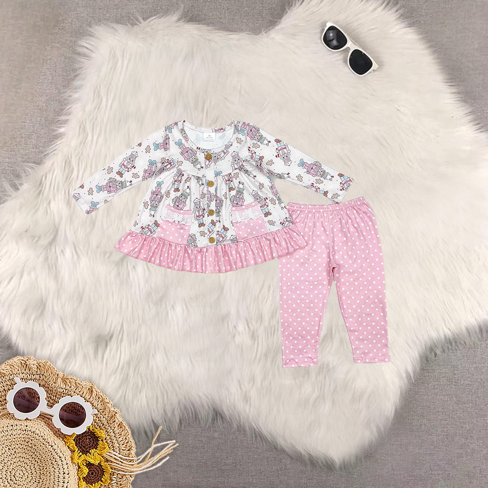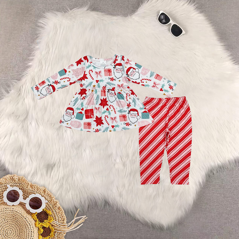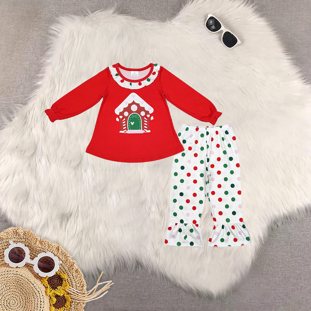 RTS NO MOQ Sibling Baby Girls Christmas trees Long Sleeve Pants Set