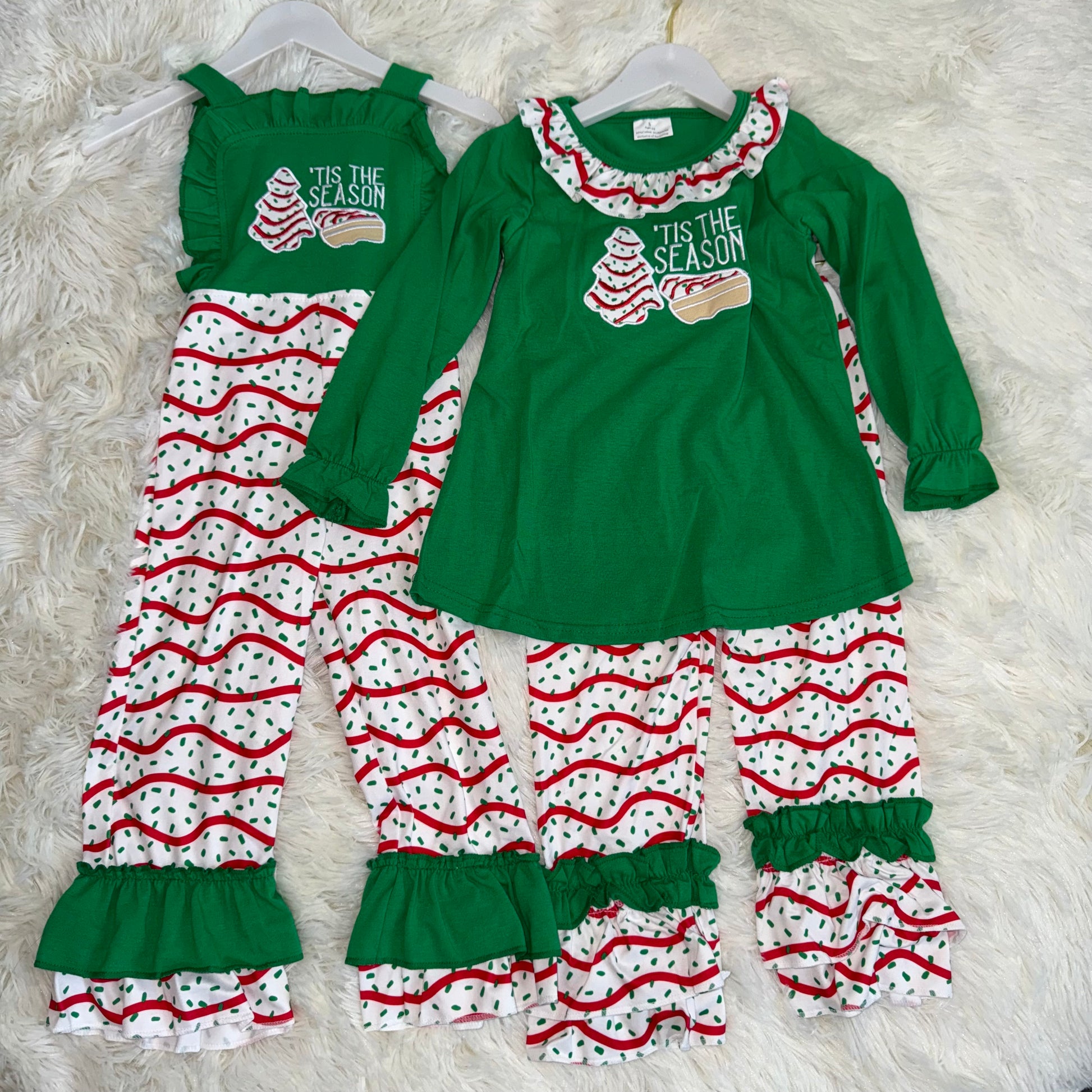 RTS NO MOQ Sibling Baby girls clothes embroidery Christmas long-sleeved trousers suits and jumpsuit
