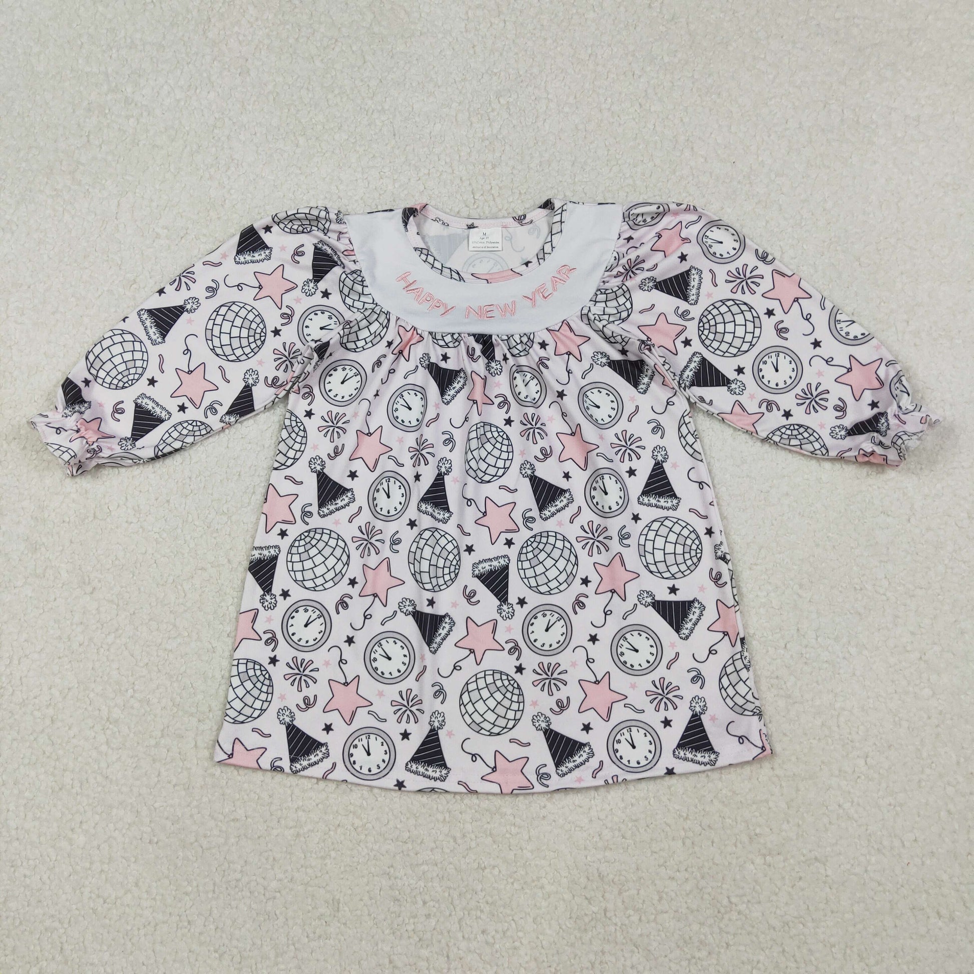 RTS NO MOQ Sibling Baby girls clothes Embroidery happy new year long-sleeved rompers and dress