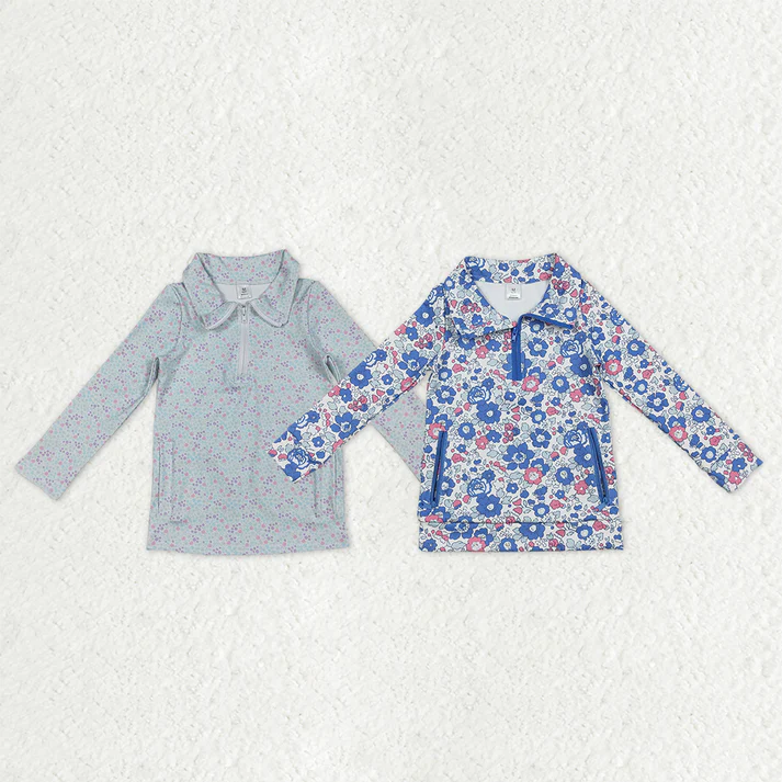 RTS NO MOQ Sibling Baby Girls clothes yoga Zipper Stand Collar Pullover Long Sleeve Tops
