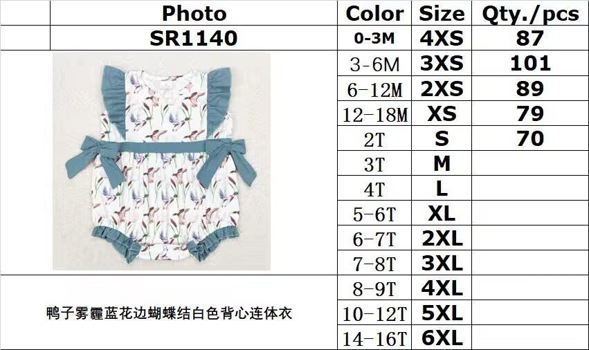 RTS no moq SR1140 Duck haze blue lace bow white vest jumpsuit