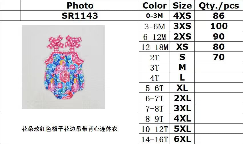 RTS no moq SR1143 Floral rose red plaid lace camisole jumpsuit