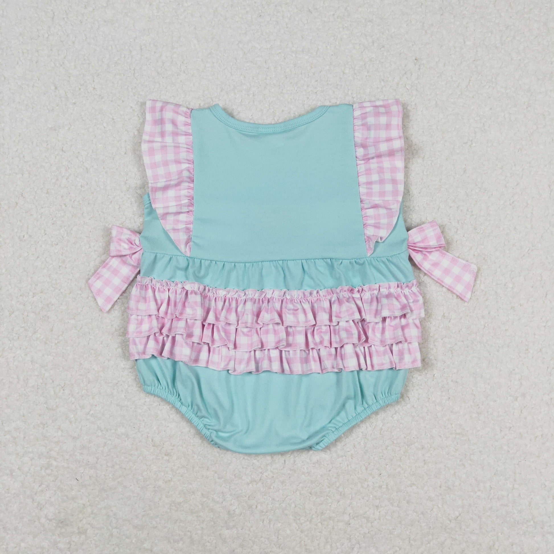 RTS no moq SR1260 Embroidered Ice Cream Plaid Teal Sleeveless Jumpsuit
