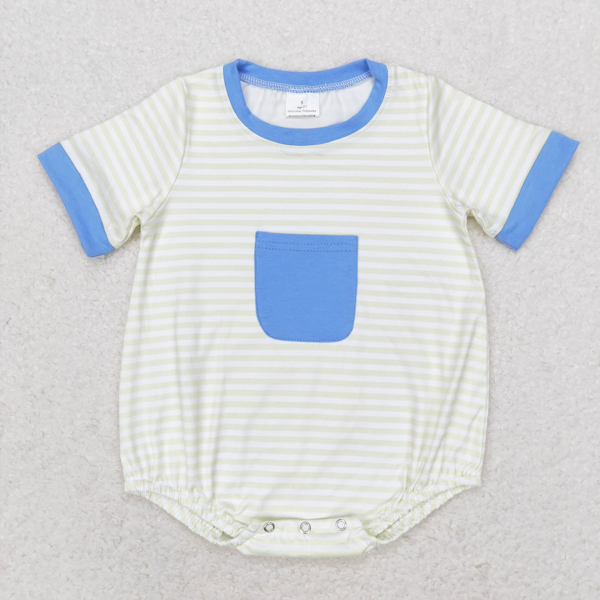 RTS no moq SR1840 Striped haze blue pocket short-sleeved jumpsuit