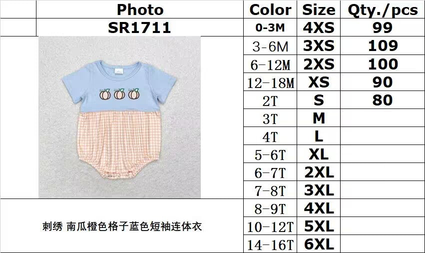 RTS no moq SR1711 Embroidered pumpkin orange plaid blue short-sleeved jumpsuit