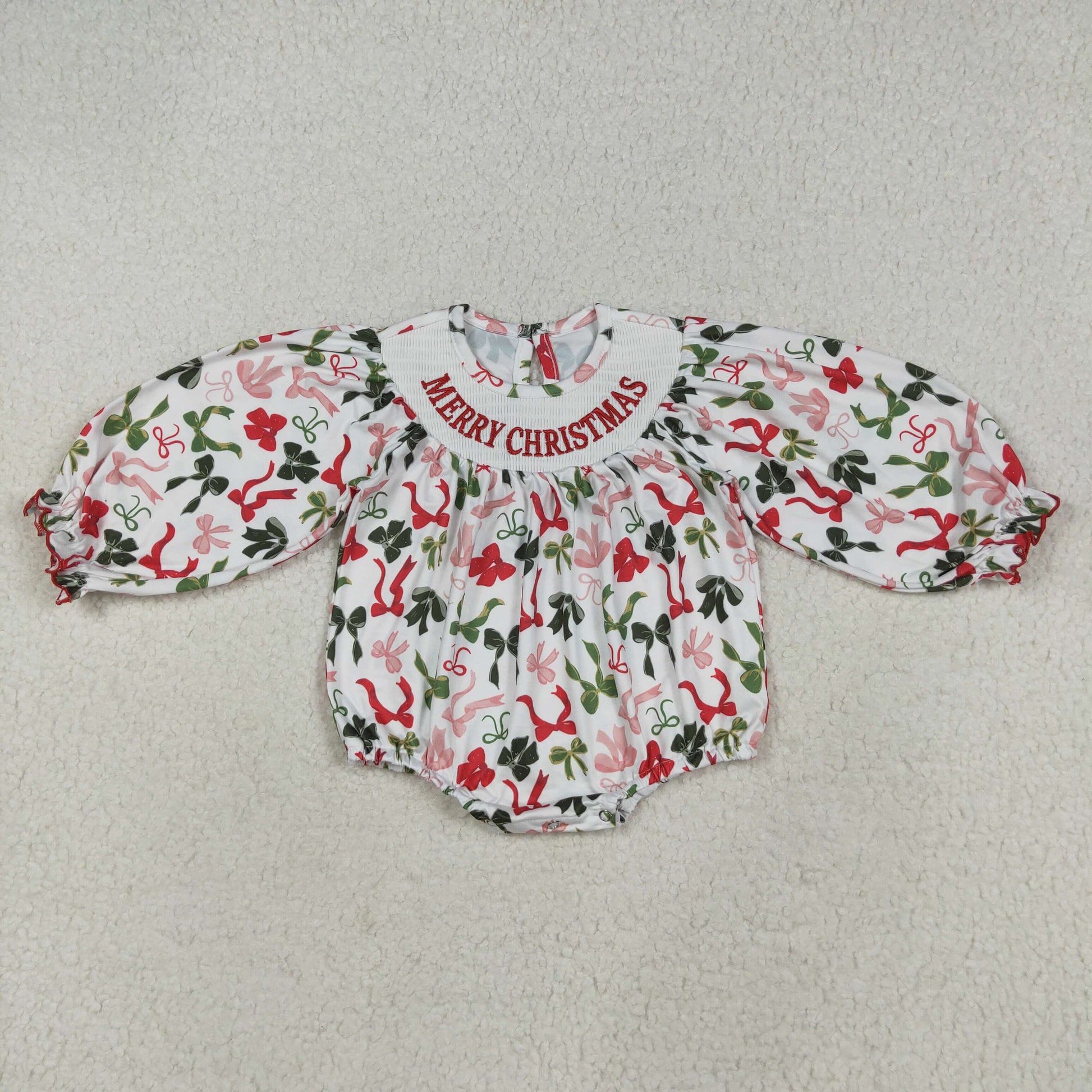 RTS Sibling baby girls clothes smocked embroidery Christmas long Sleeve dress and rompers