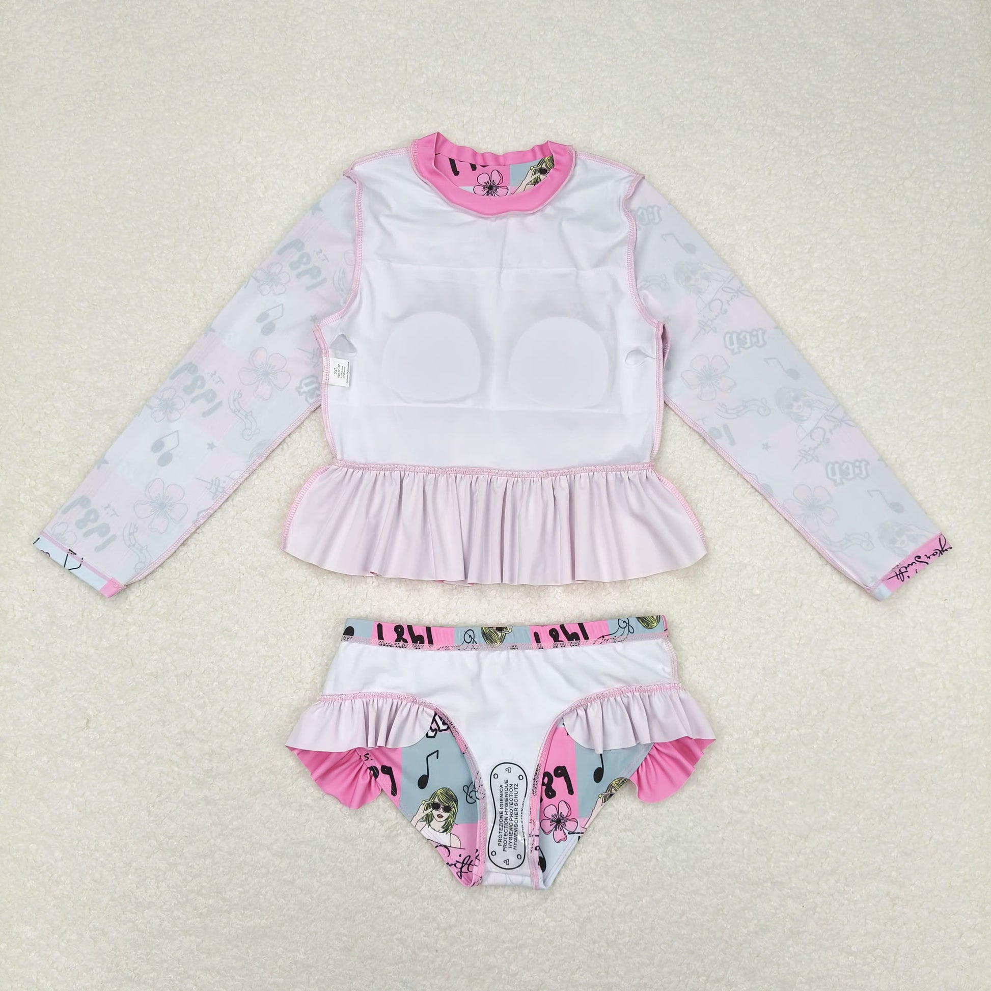 S0348 taylor swift 1989 rep floral plaid pink lace long-sleeved swimsuit suit