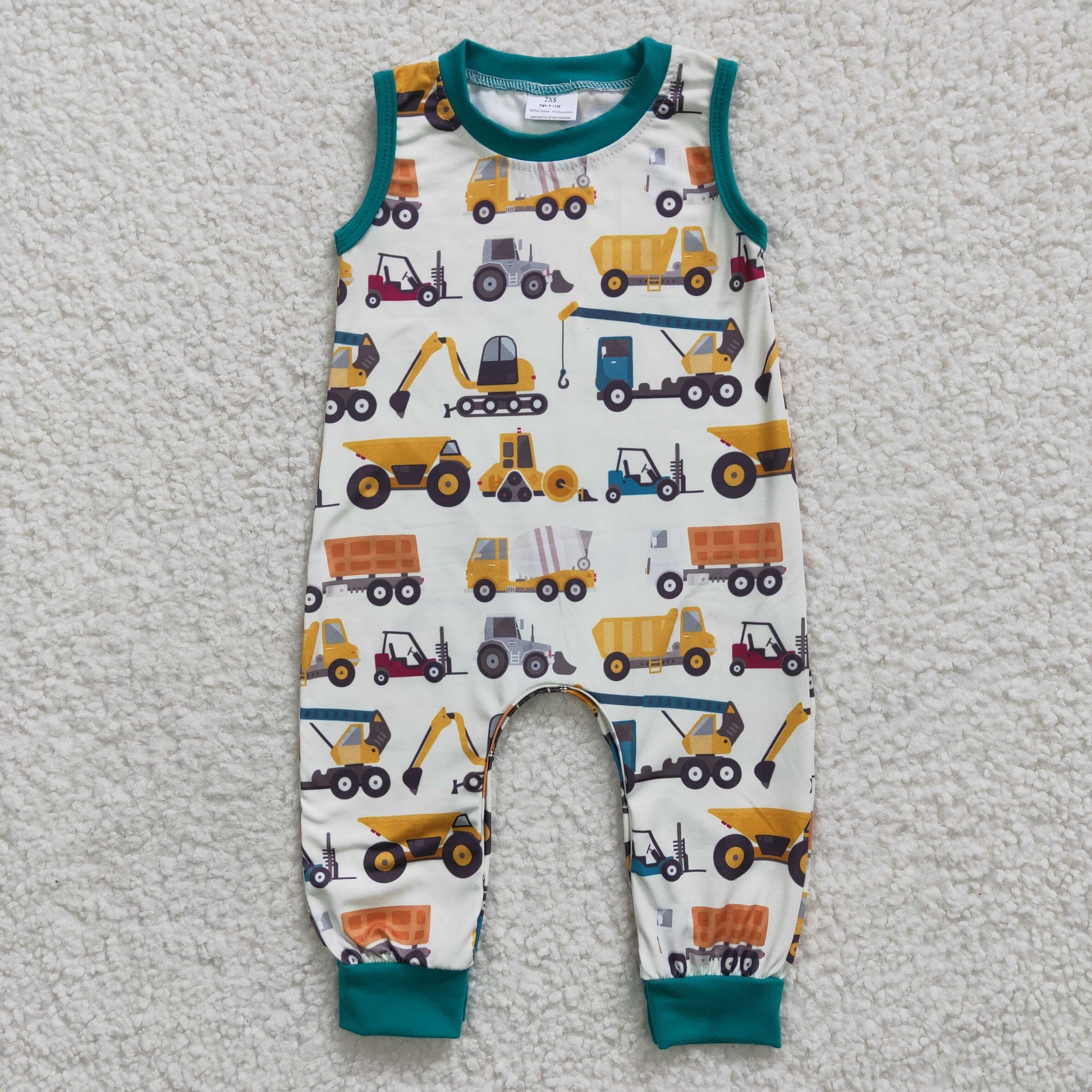 SR0197 Boys Construction Vehicle Excavator Sleeveless Jumpsuit