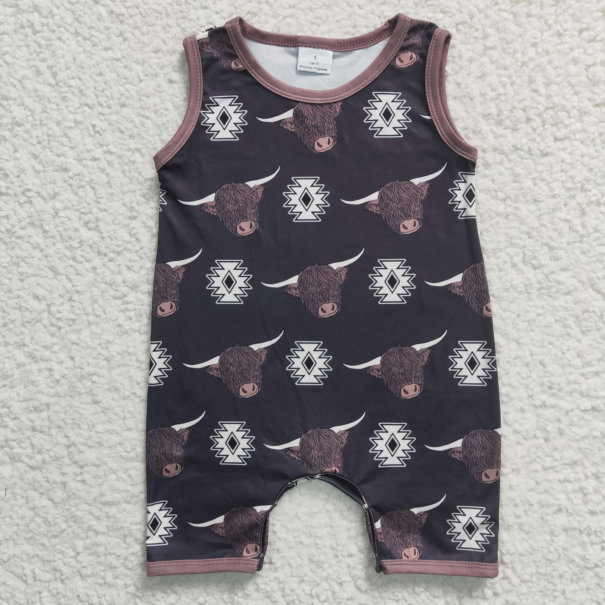 SR0284 Bull Head Geometric Black Sleeveless Bodysuit