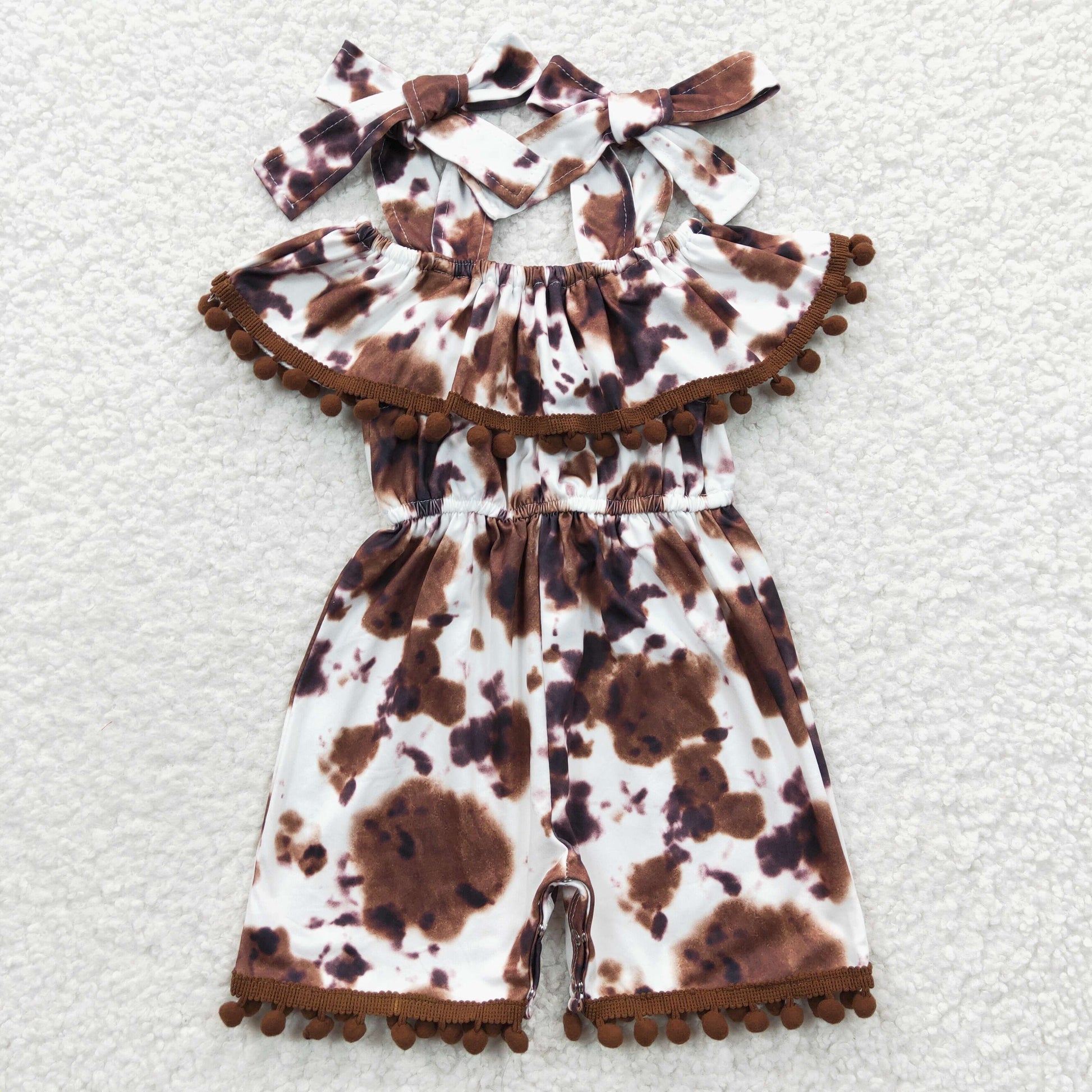 SR0307 Girls ink pattern brown suspender jumpsuit