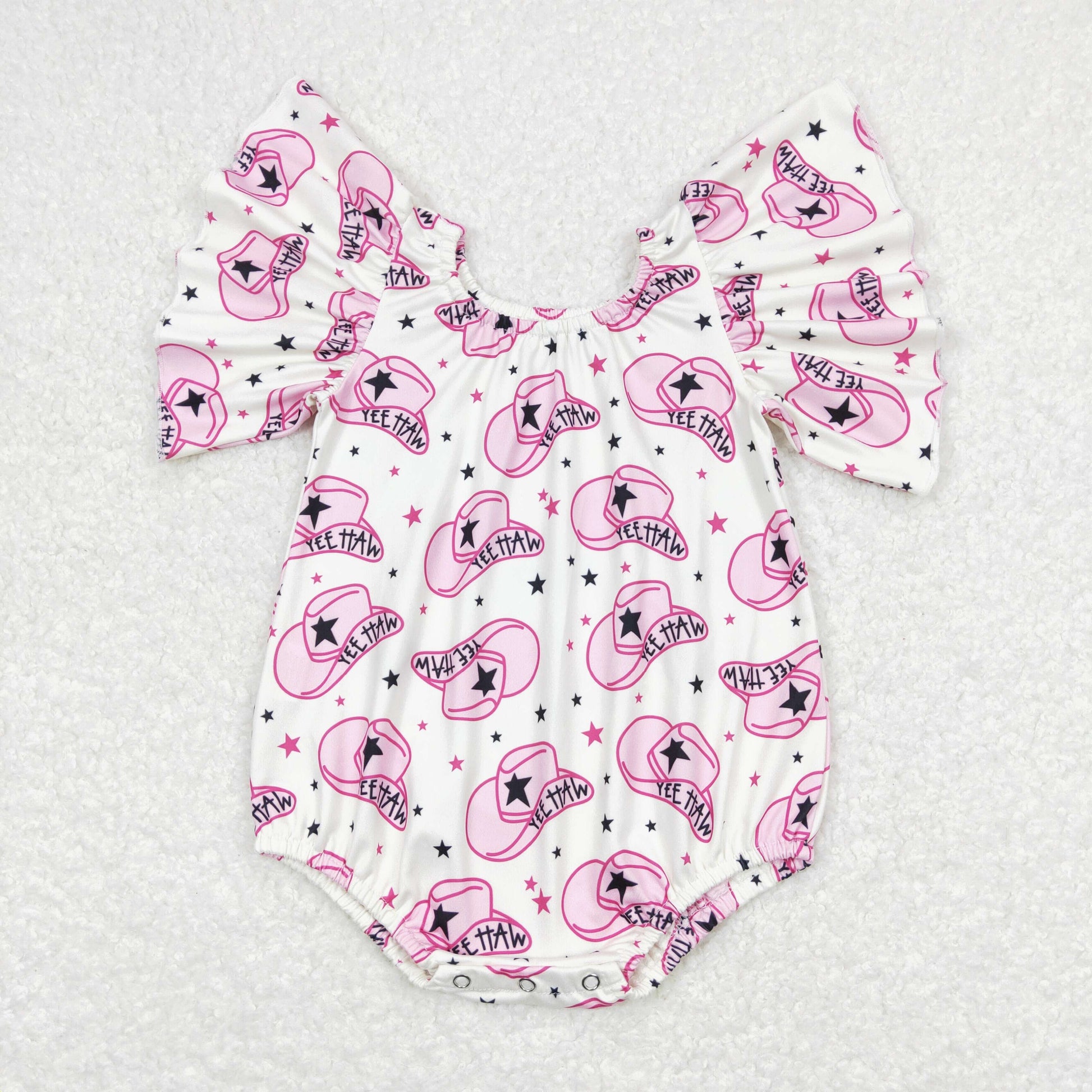 SR0709 Star Cowboy Hat Off-White Bell Sleeve Jumpsuit
