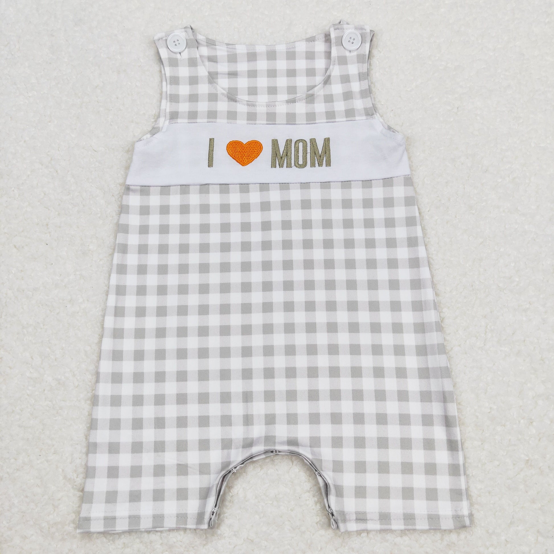 SR1132 I love mom embroidered green plaid sleeveless jumpsuit